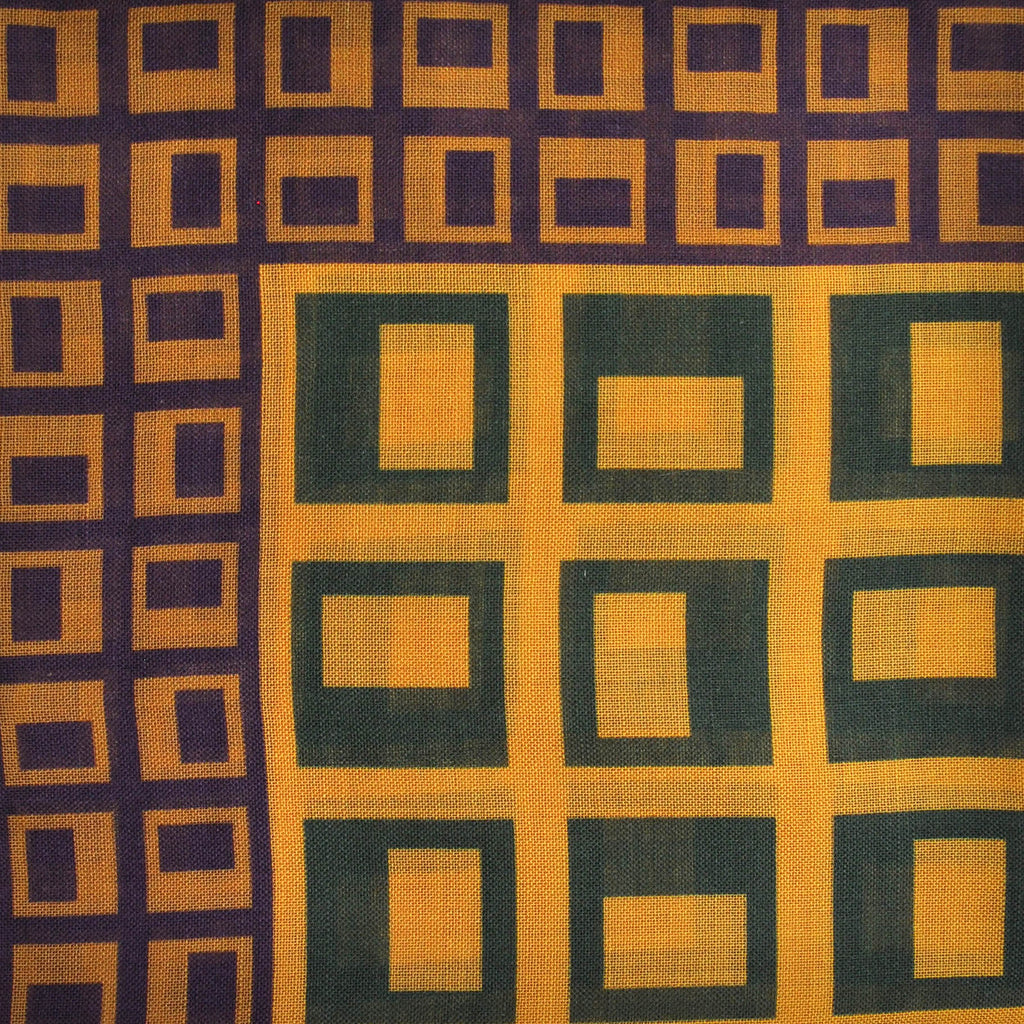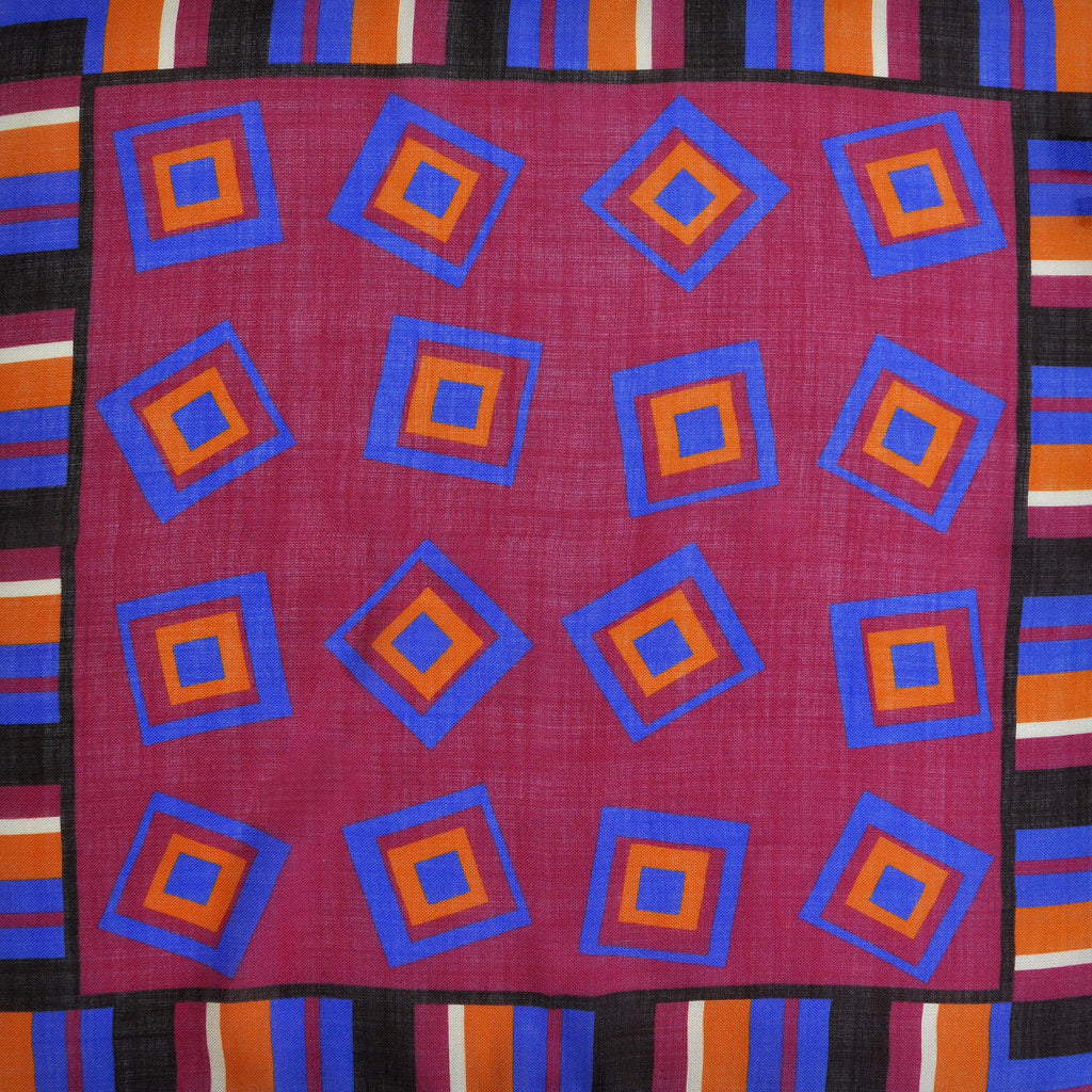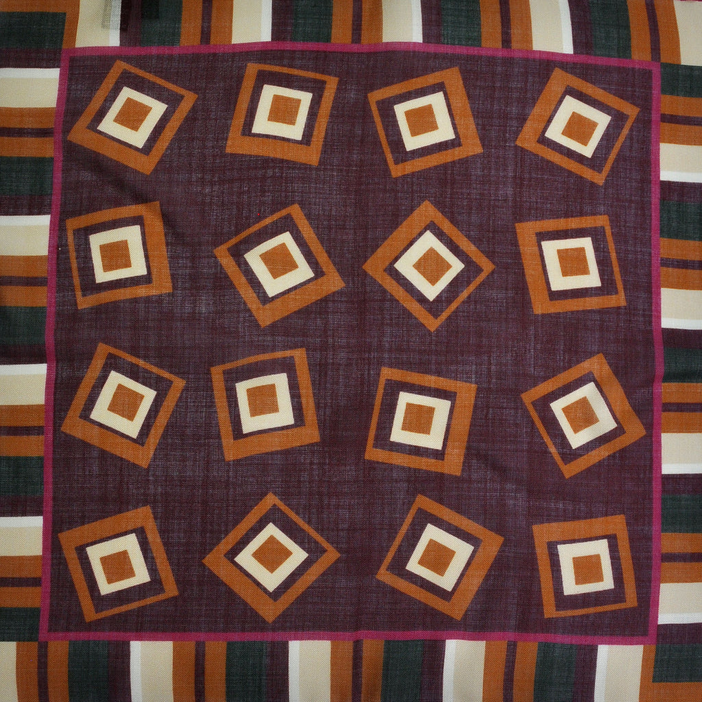 Geometric Squares Wool & Silk Pocket Square in Green, Claret & Ochre