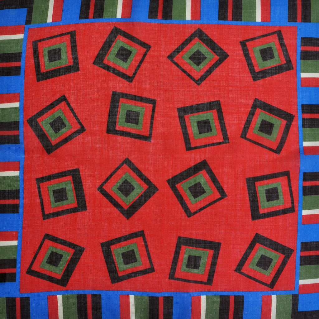 Stripes & Geometrics Wool & Silk Pocket Square in Red, Green & Blue