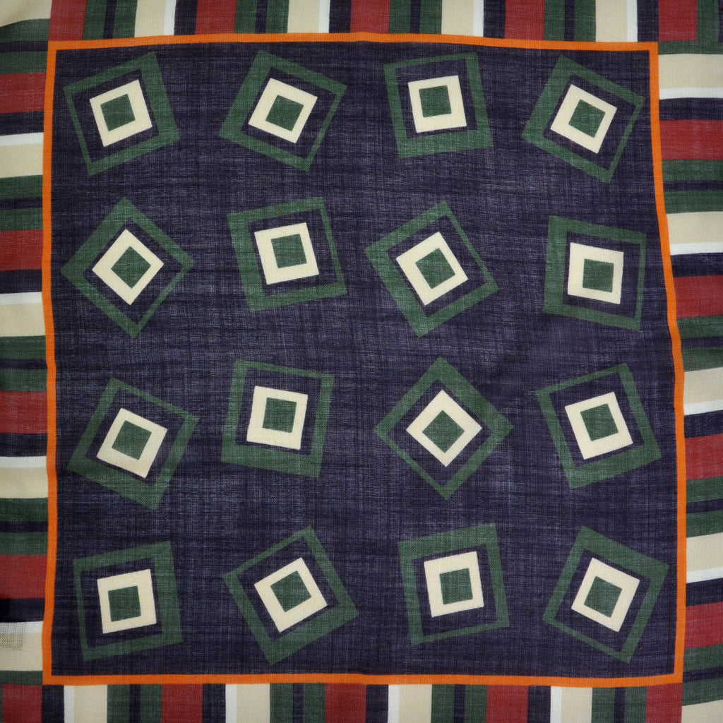 Stripes & Geometrics Wool & Silk Pocket Square in Navy, Green & Rusty Brown