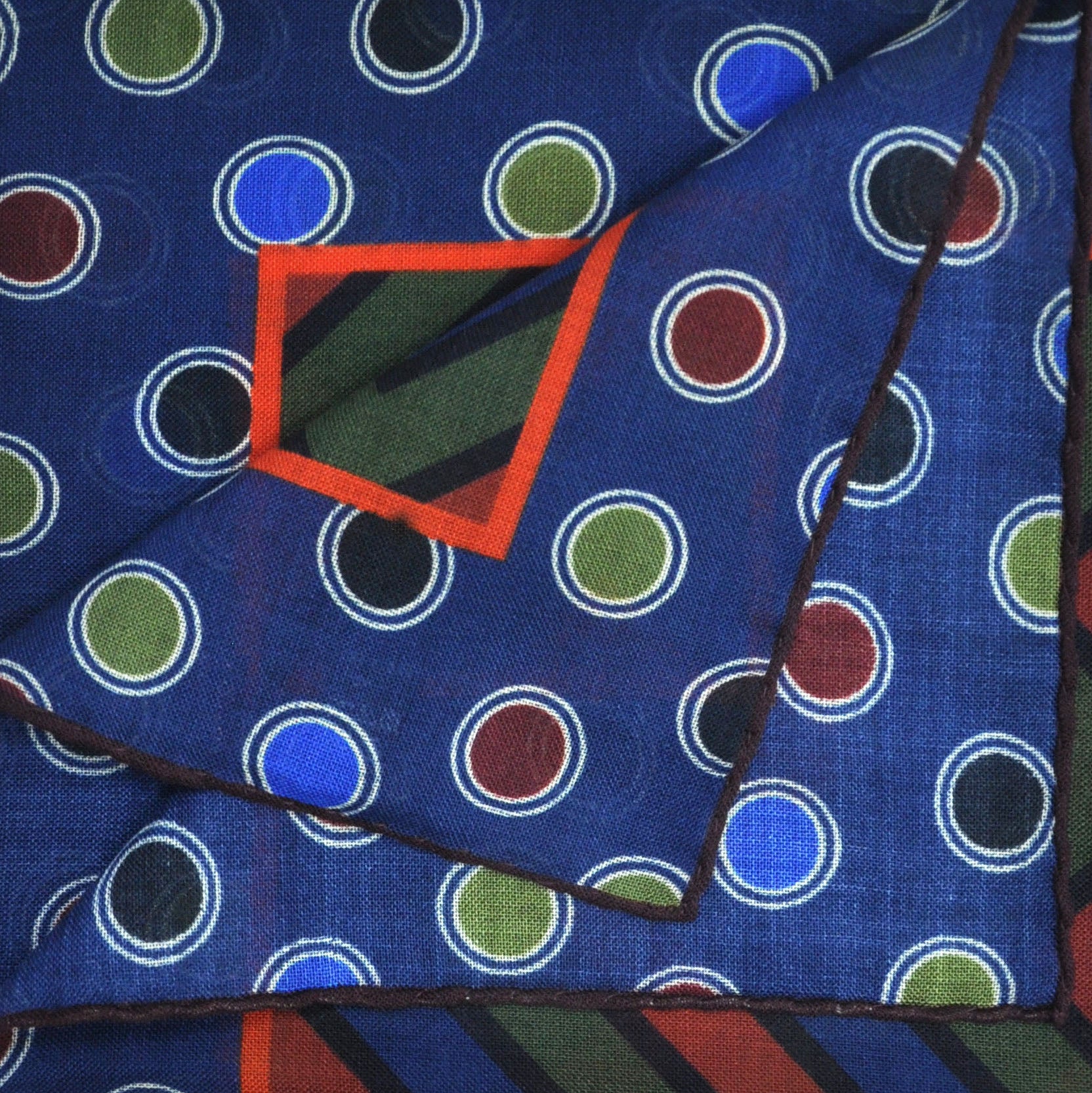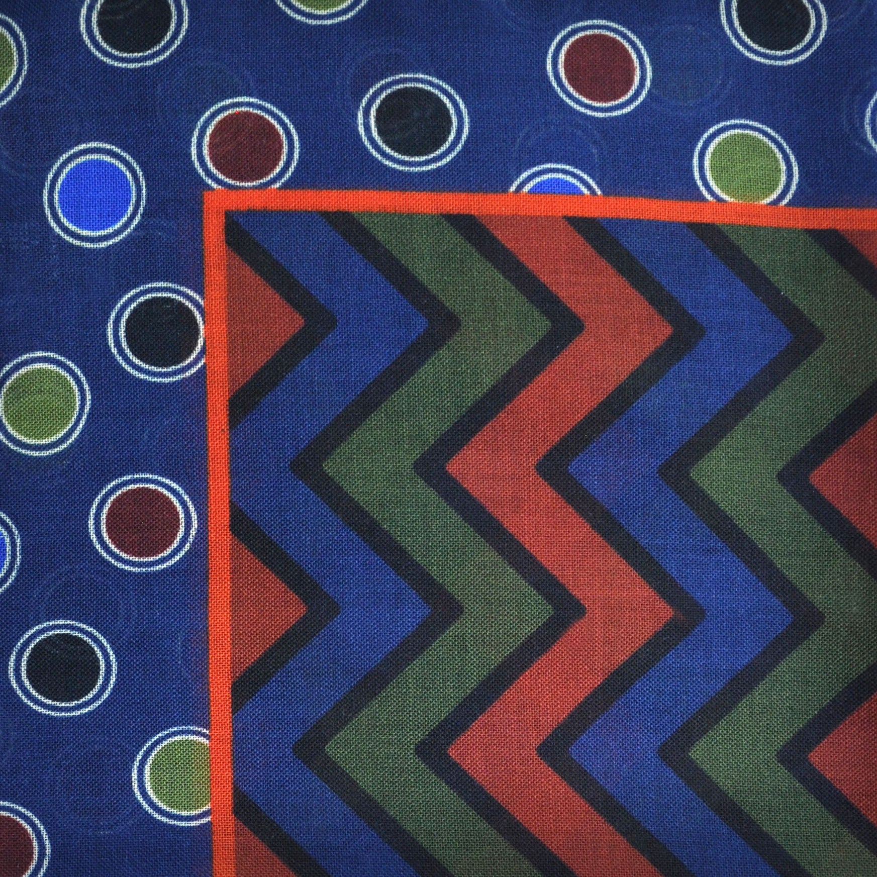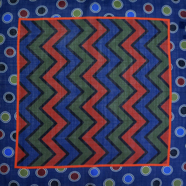 Chevrons & Spots Wool & Silk Pocket Square in Blue, Red, Green & Navy