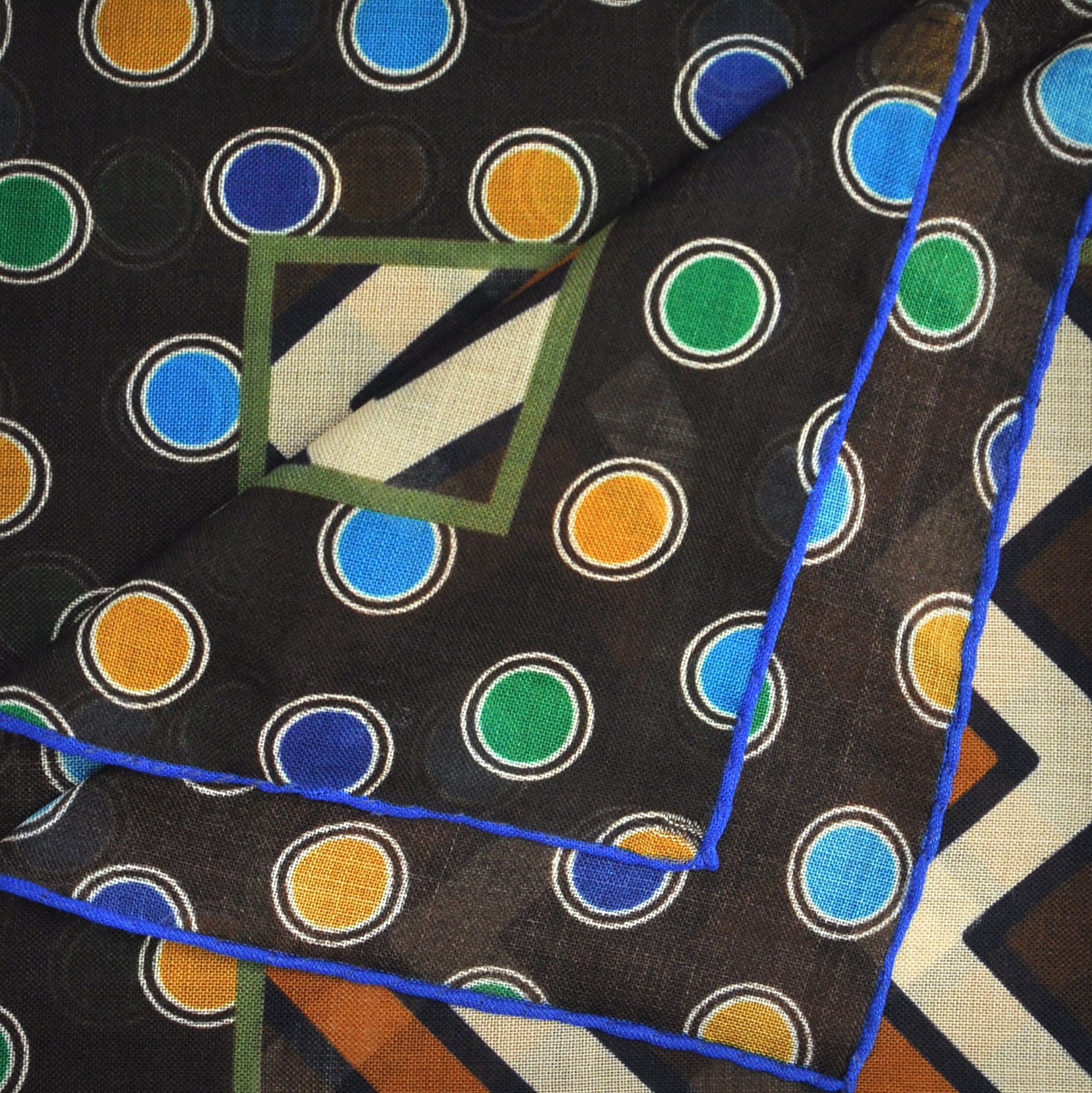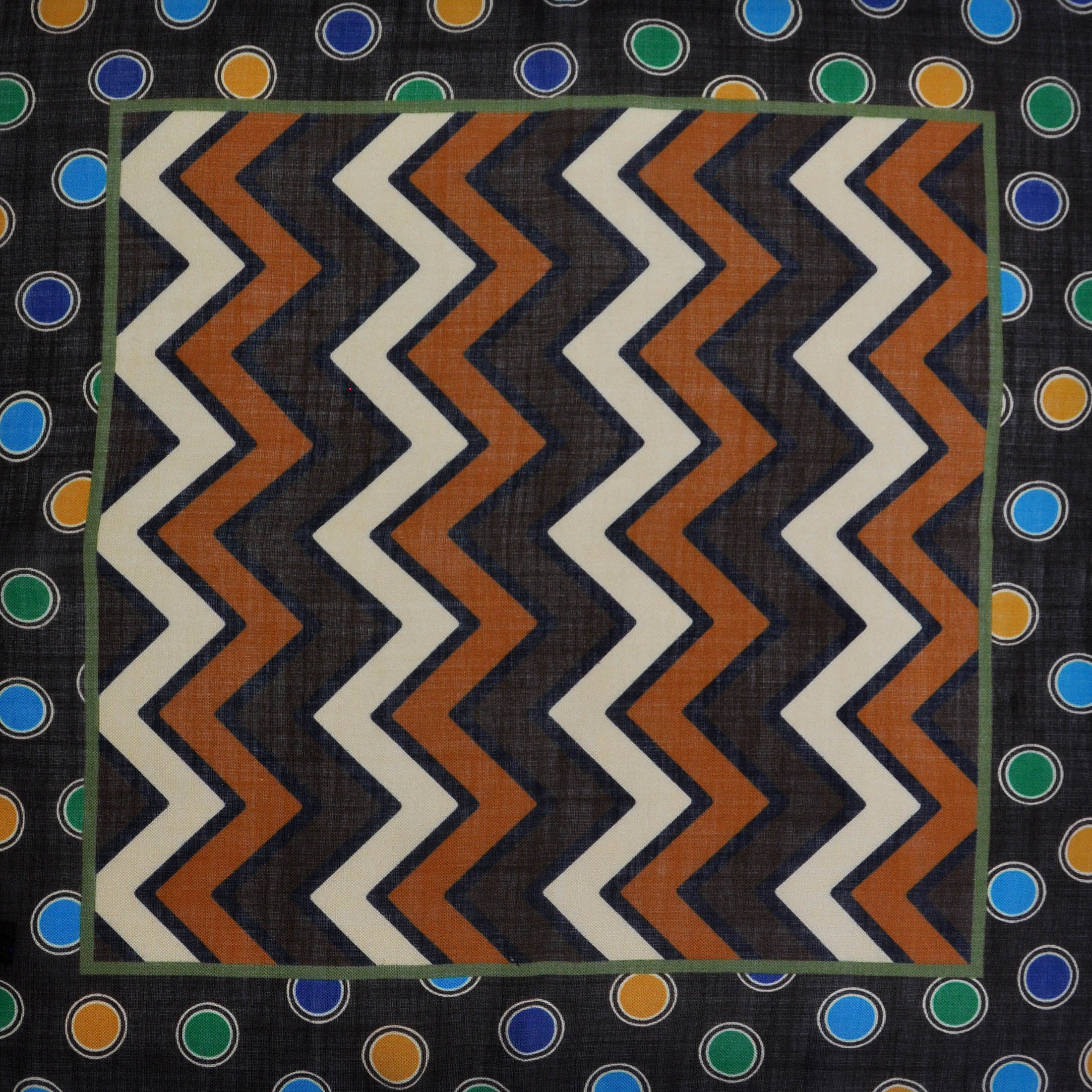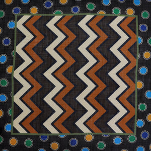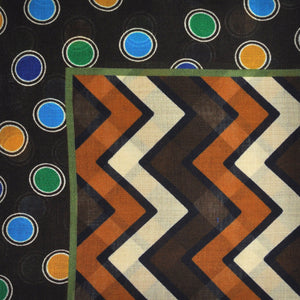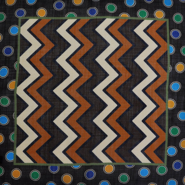 Chevrons & Spots Wool & Silk Pocket Square in Brown, Beige, Blue & Green