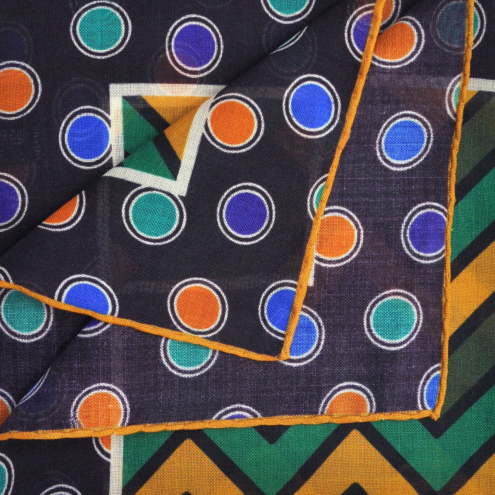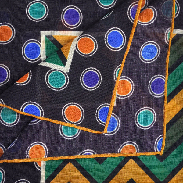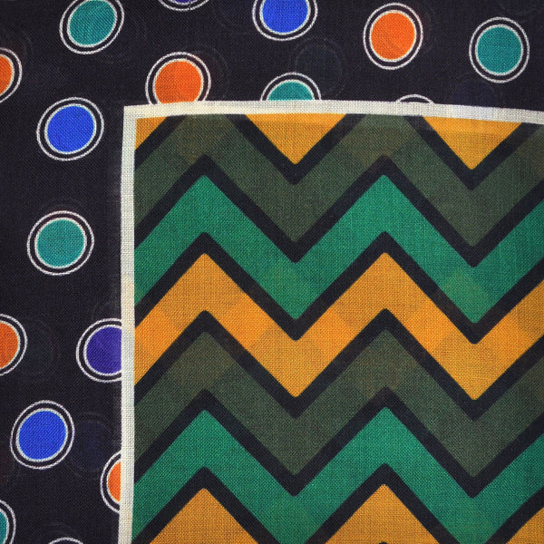 Chevrons & Spots Wool & Silk Pocket Square in Green, Ochre, Blue & Brown