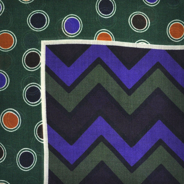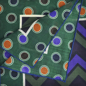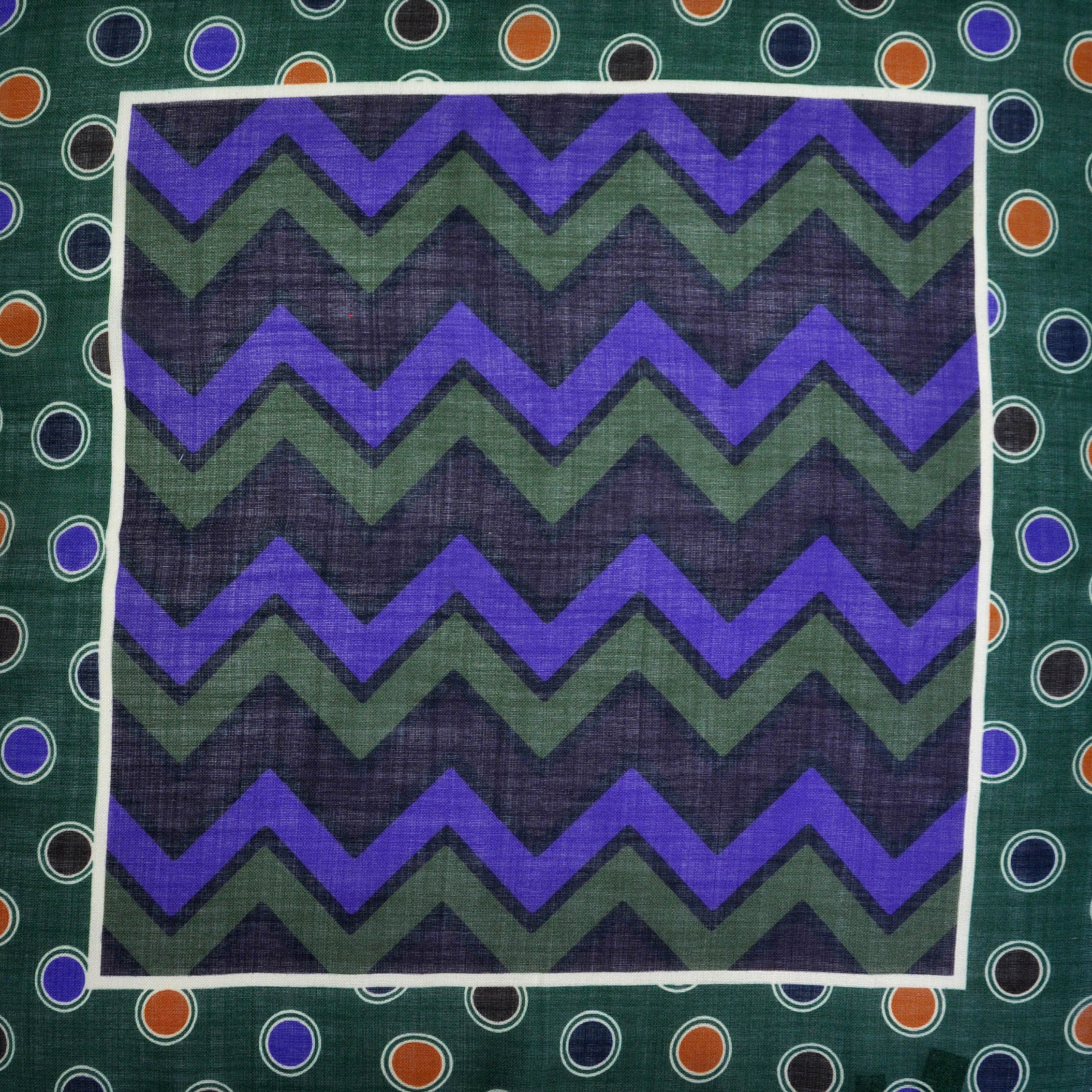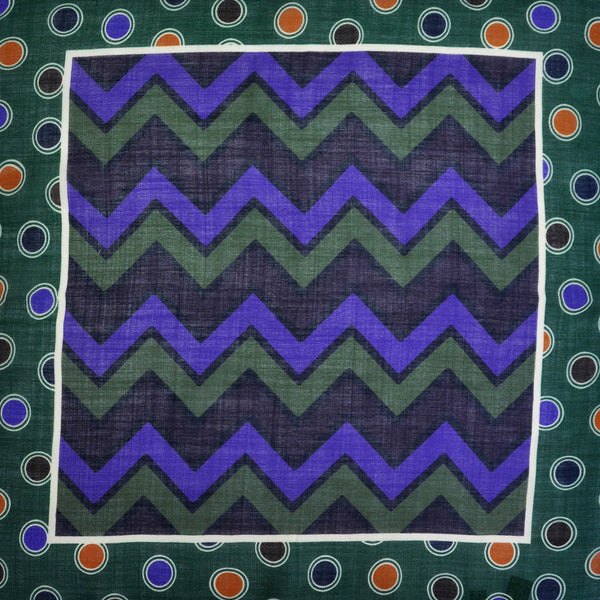 Chevrons & Spots Wool & Silk Pocket Square in Green, Plum, Blue & Red