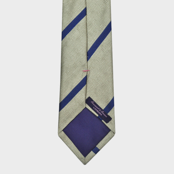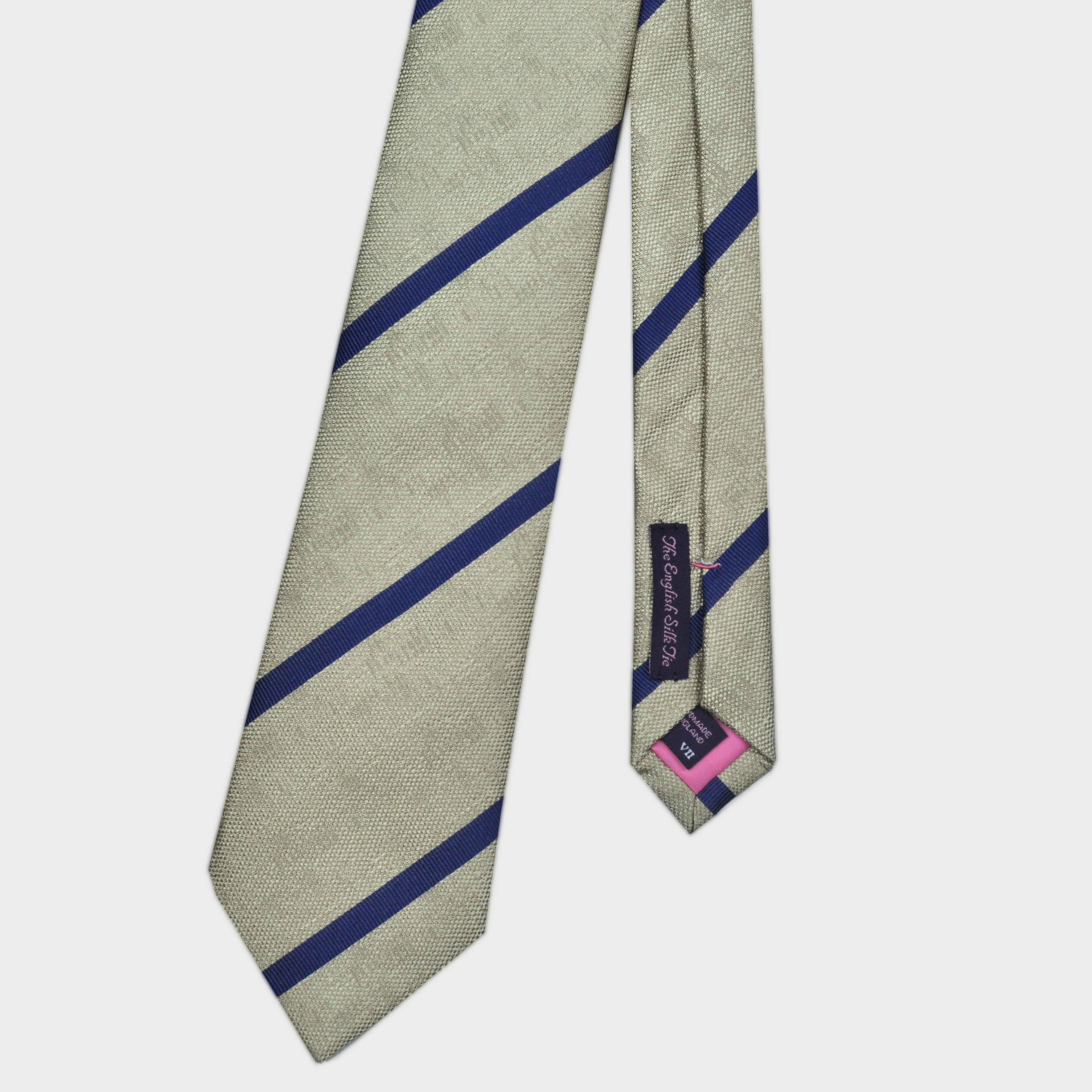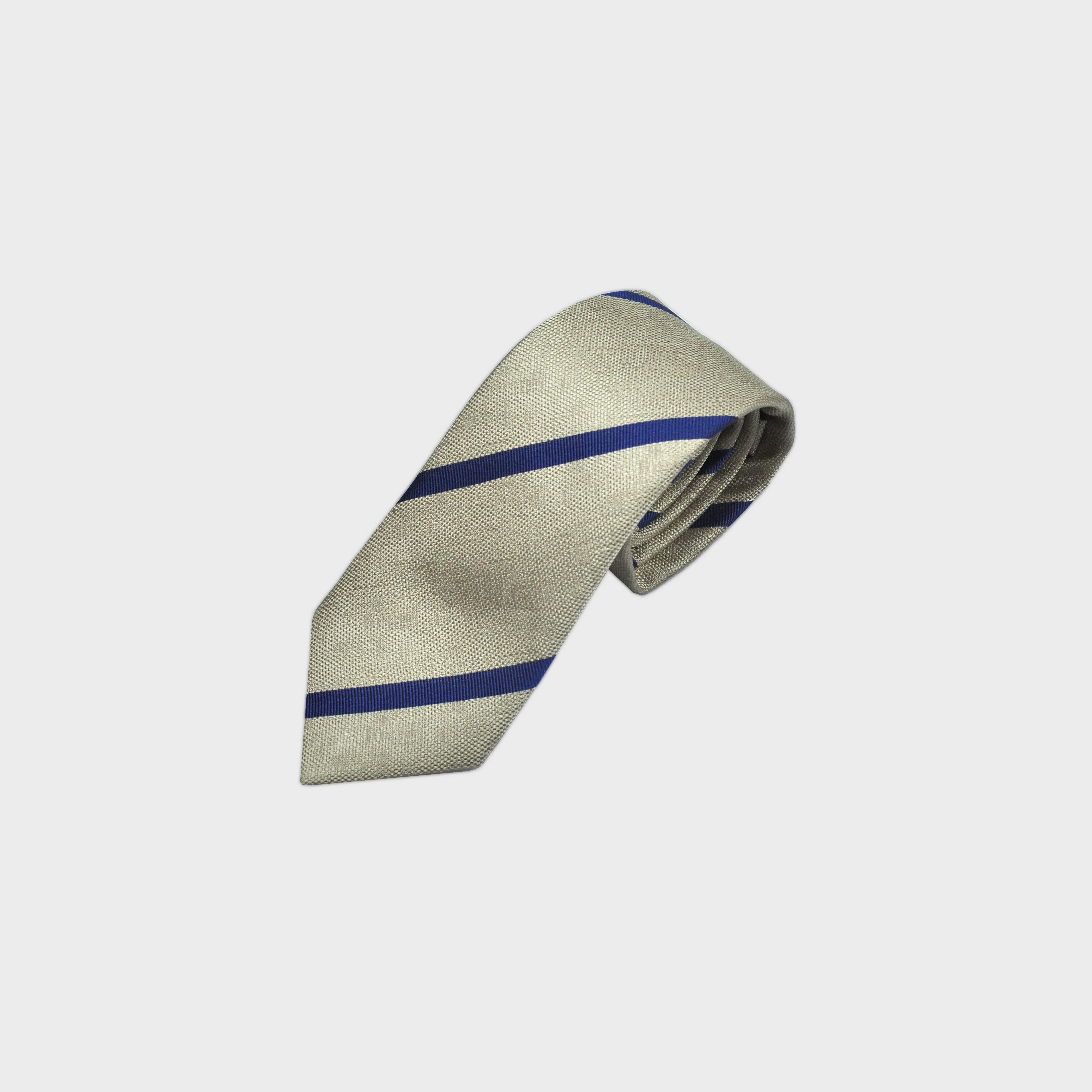 Blue Reppe Stripes on Ecru Tussah Silk Tie