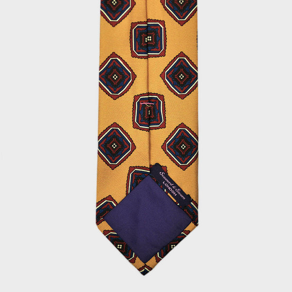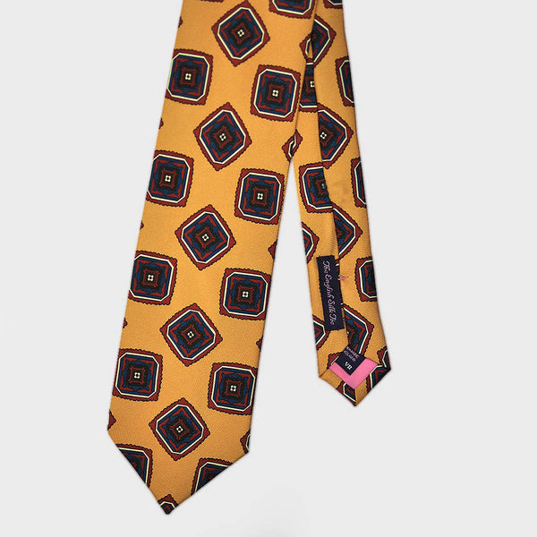 Bold Medallions Bottle Neck Silk Tie in Antique Gold