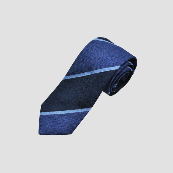 Bold Stripes Tussah Silk Tie in Blues