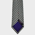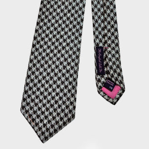 The houndstooth design always creates a very stylish look. Here the panama weave gives a dry texture to the silk, while retaining its softness, which adds another touch of cool to the finish.