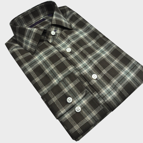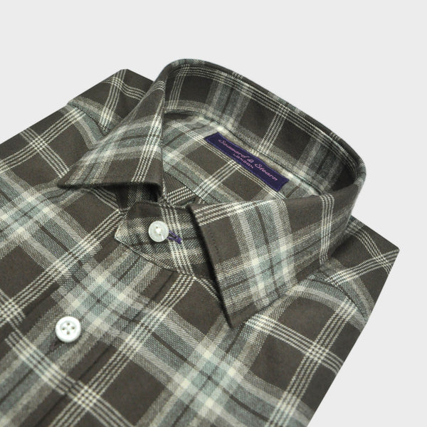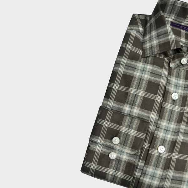 Brushed Cotton Spread Collar Check Shirt in Brown & Beige