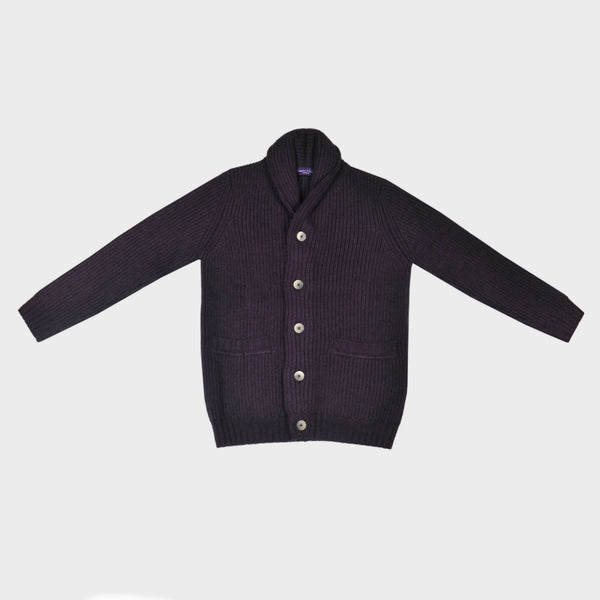 Chunky Heavy Weight Shawl Collar Merino Wool Cardigan in Claret
