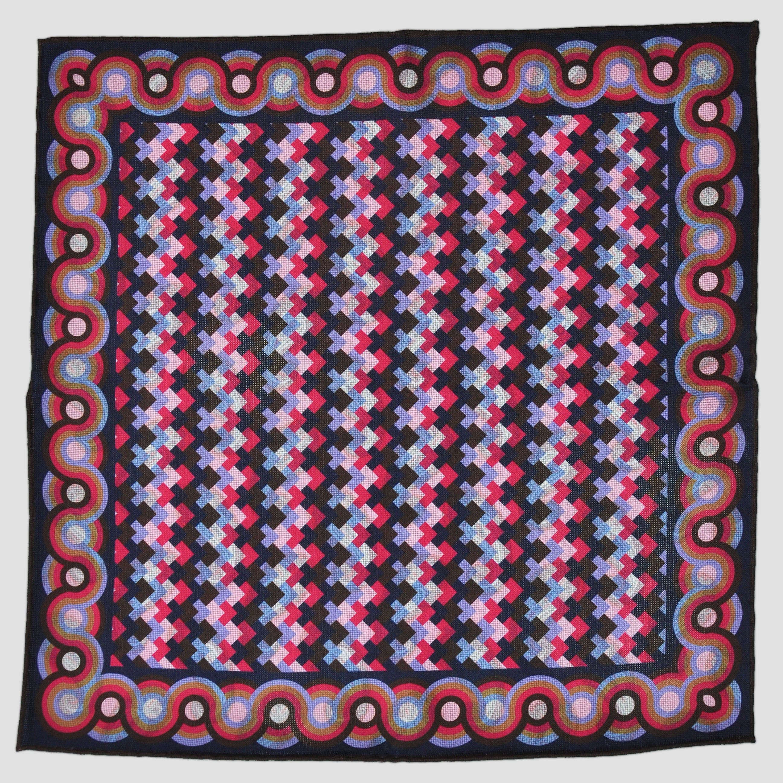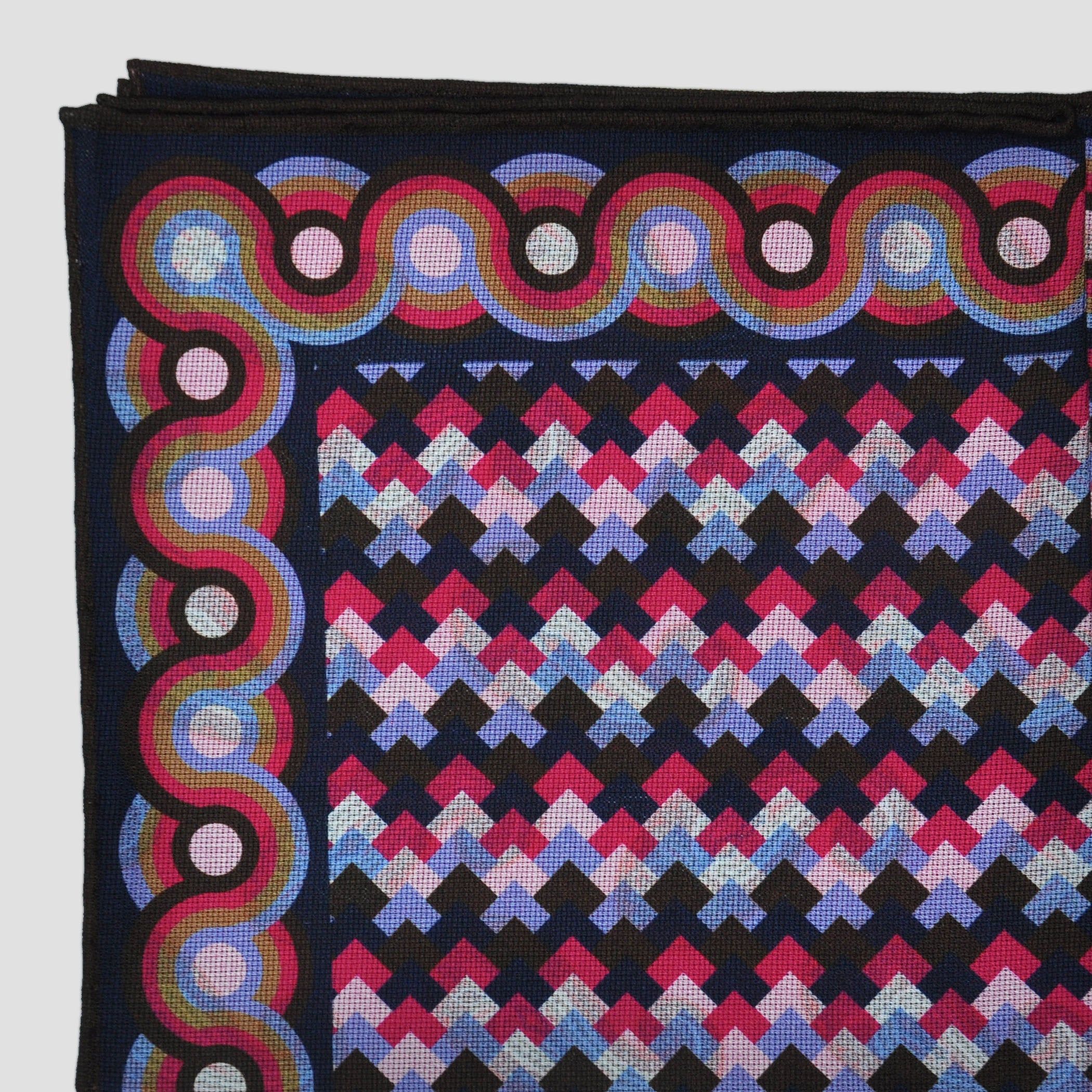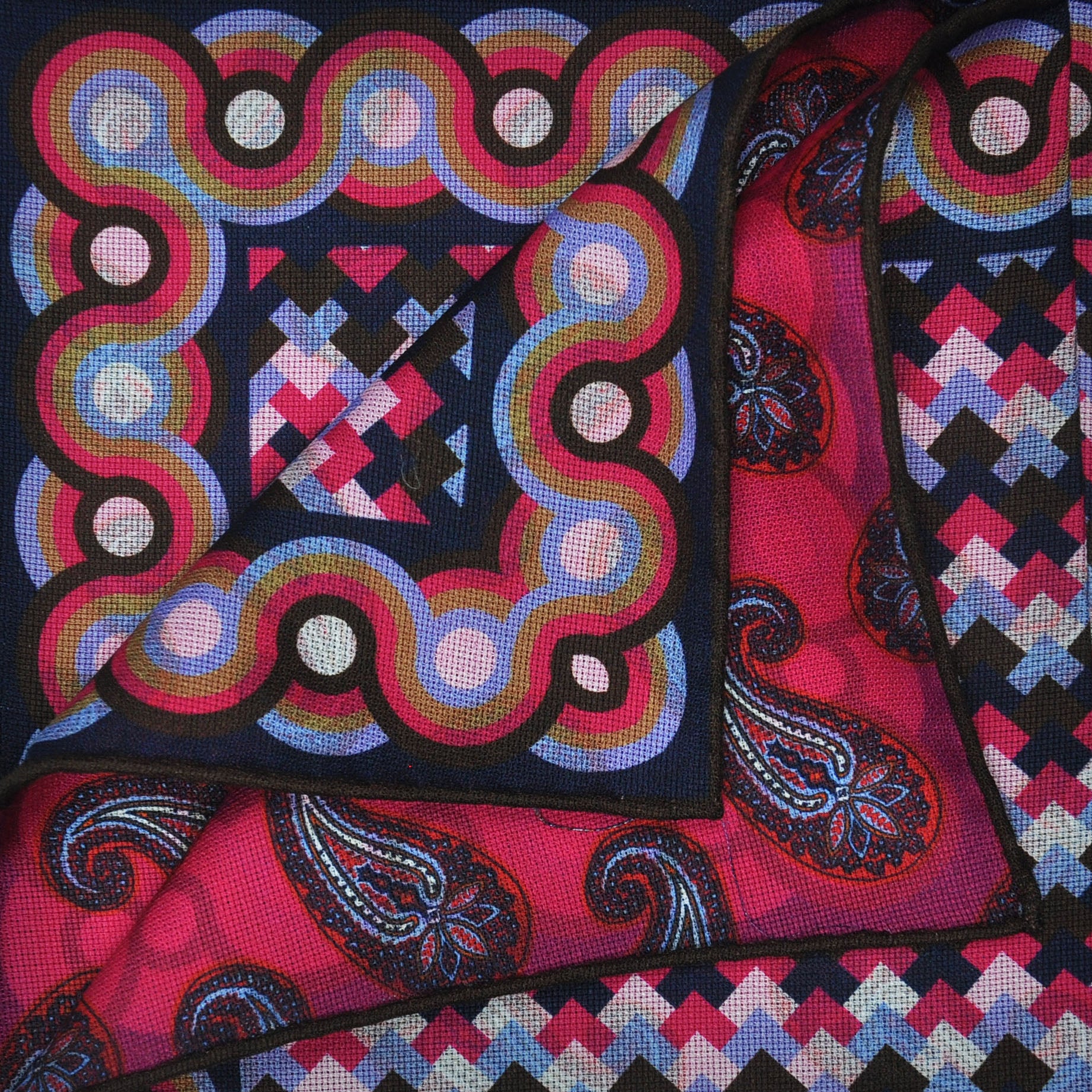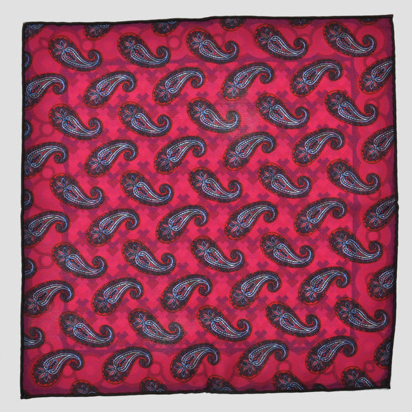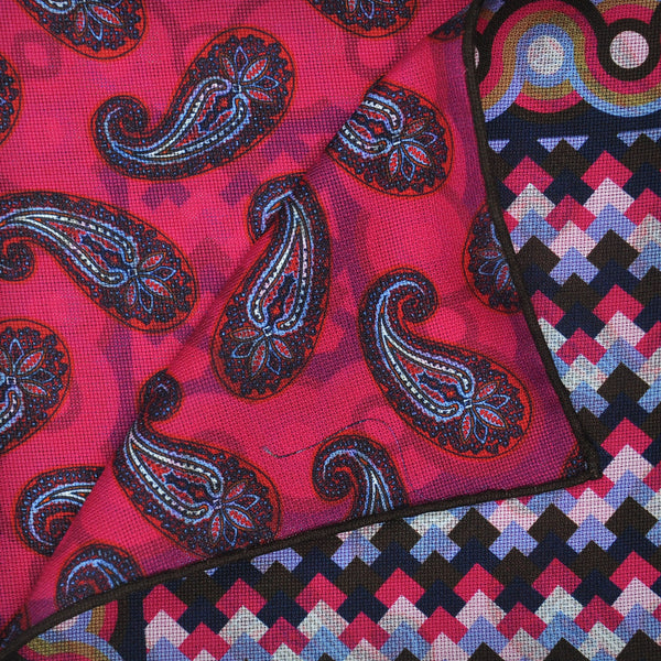 Deco & Tears Reversible Panama Silk Pocket Square in Blues & Pink
