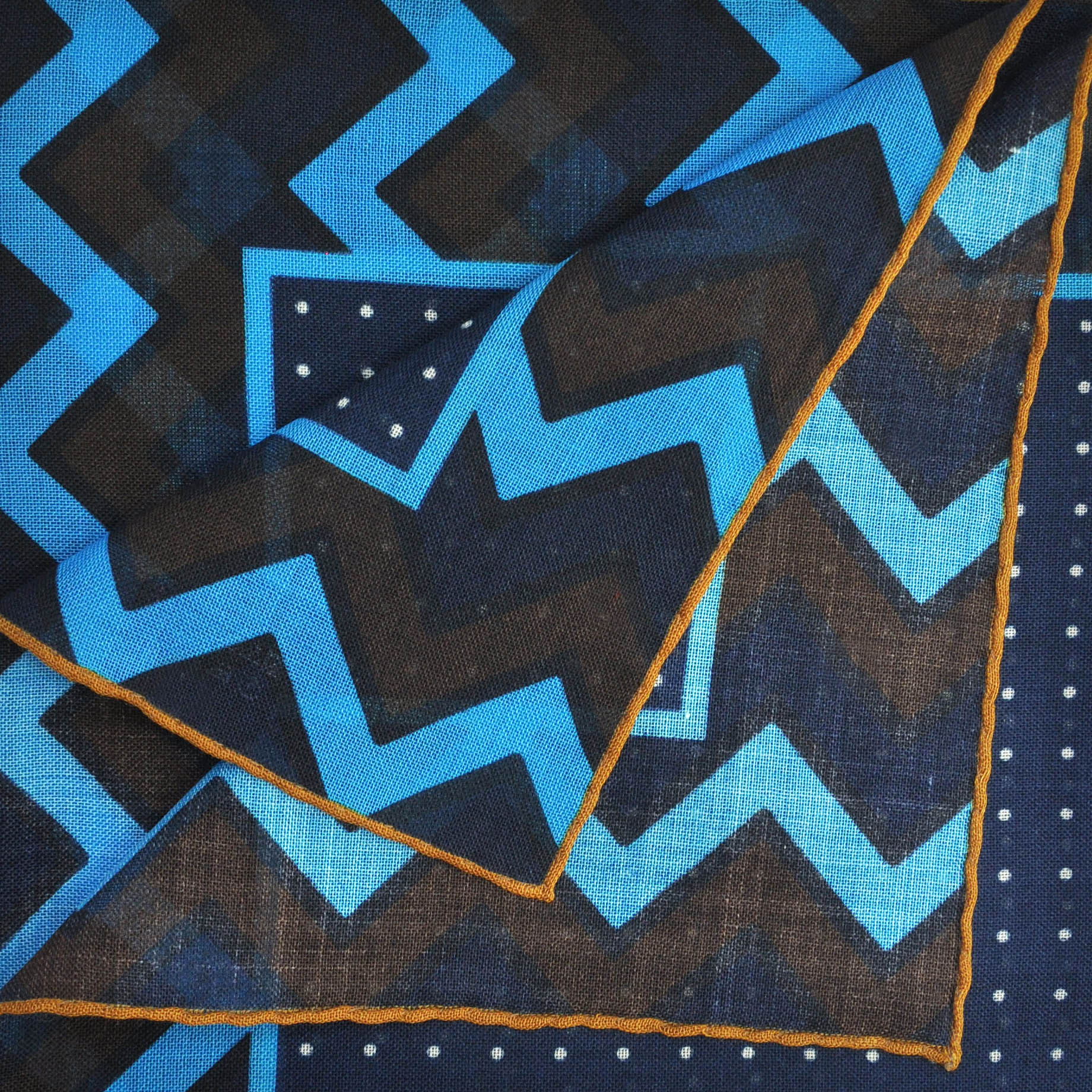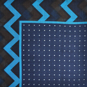Dots & Chevrons Wool & Silk Pocket Square in Blue, Navy & Brown