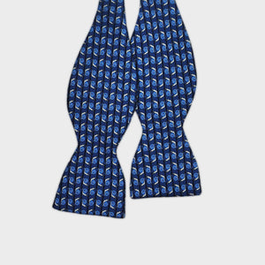 English Printed Silk Little Snail Repeat Bow Tie in Navy & Blue