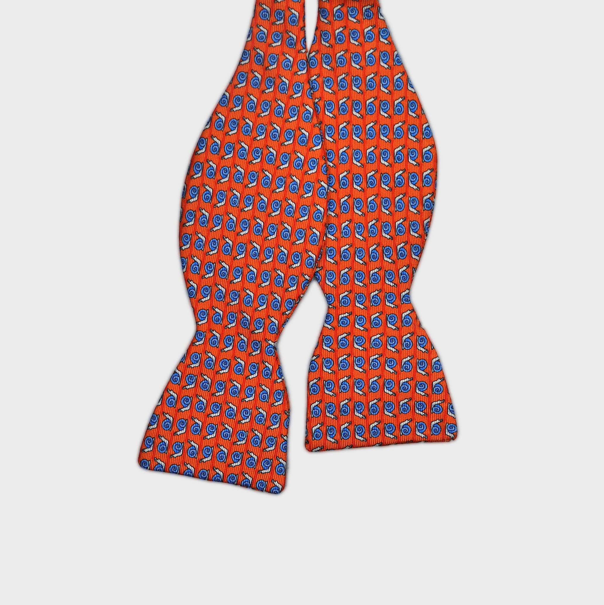 English Printed Silk Little Snail Repeat Bow Tie in Orange & Blue