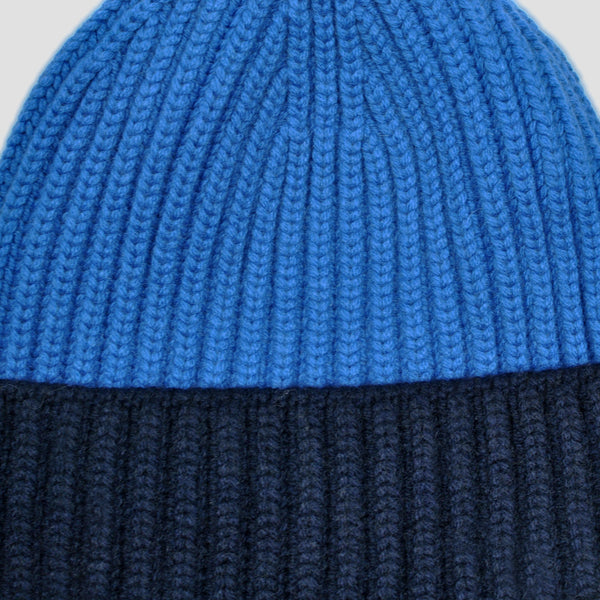 Four Ply Cashmere Winter Beanie in Blue & Navy