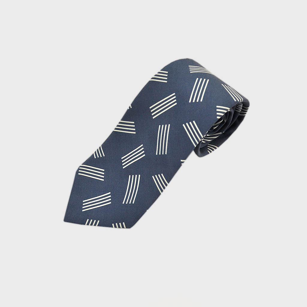 This tie has a soft and dusty texture, like an English Madder, which makes the colours softer while still making a cool summer statement.