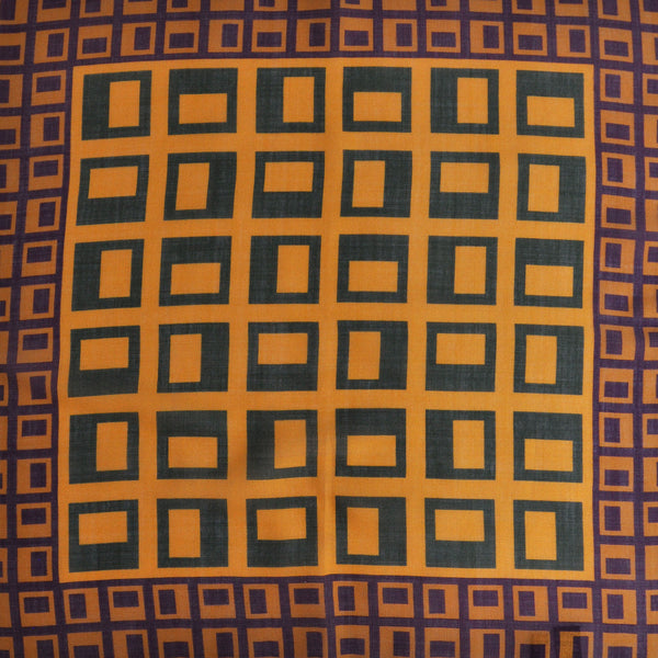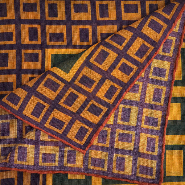 Geometric Squares Wool & Silk Pocket Square in Green, Claret & Ochre