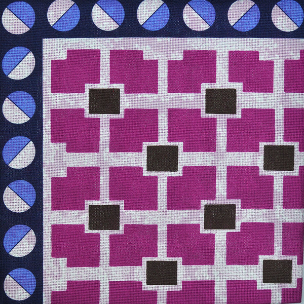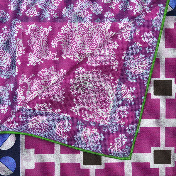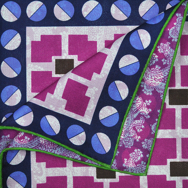 Geometrics & Paisley Reversible Panama Silk Pocket Square in Navy, Blue & Purple