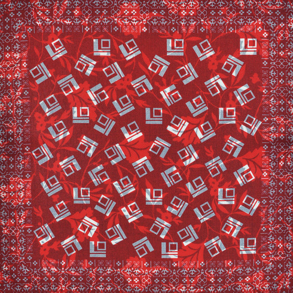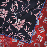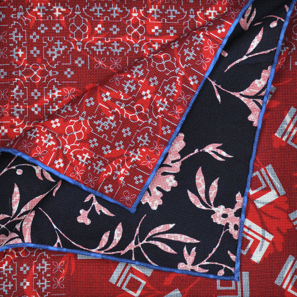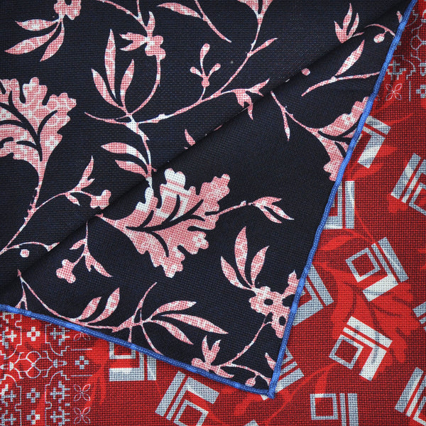 Geo's & Flora Reversible Panama Silk Pocket Square in Red & Navy