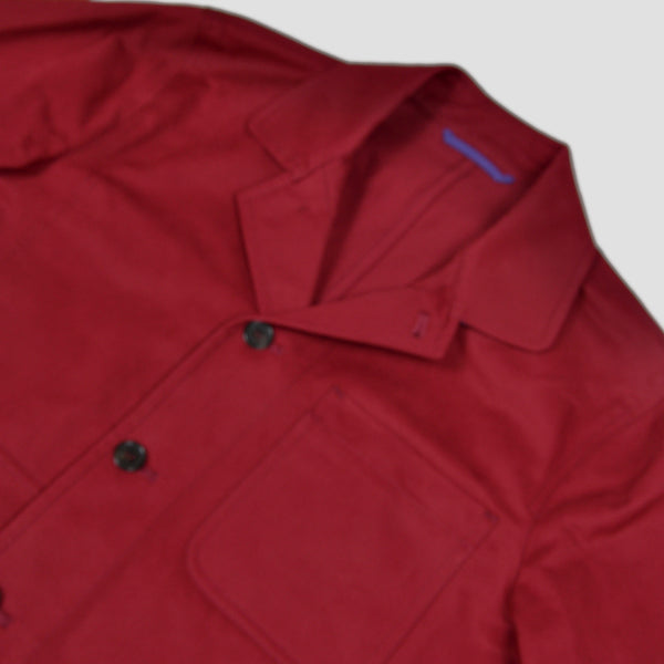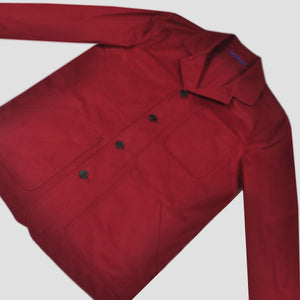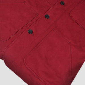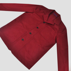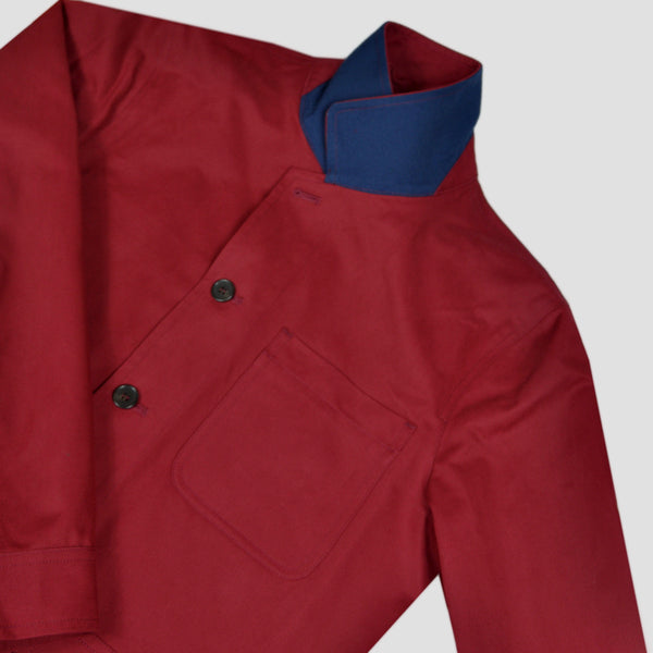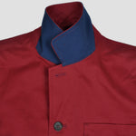 Heavy Cotton Worker Jacket in Burgundy Red with Blue (under) Collar