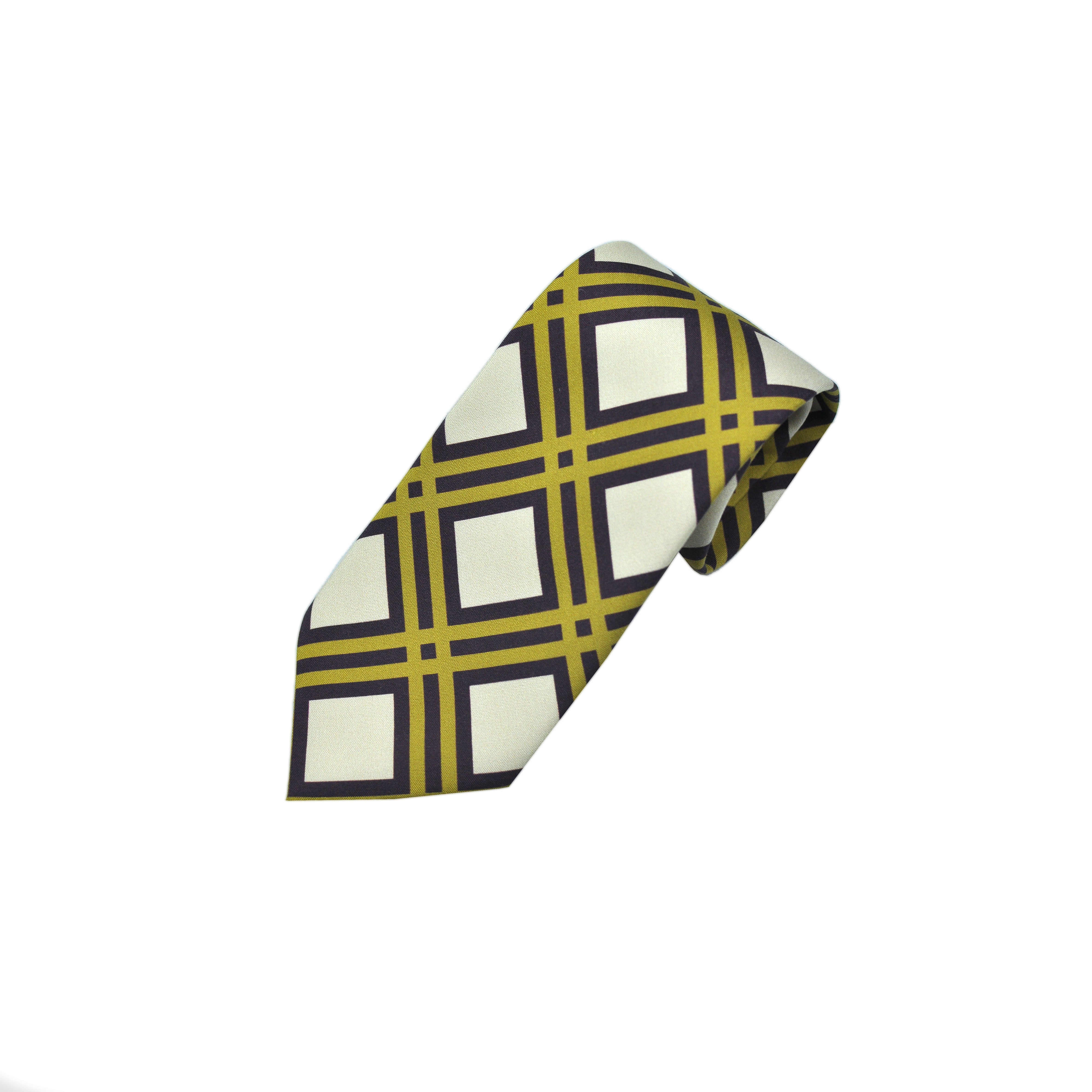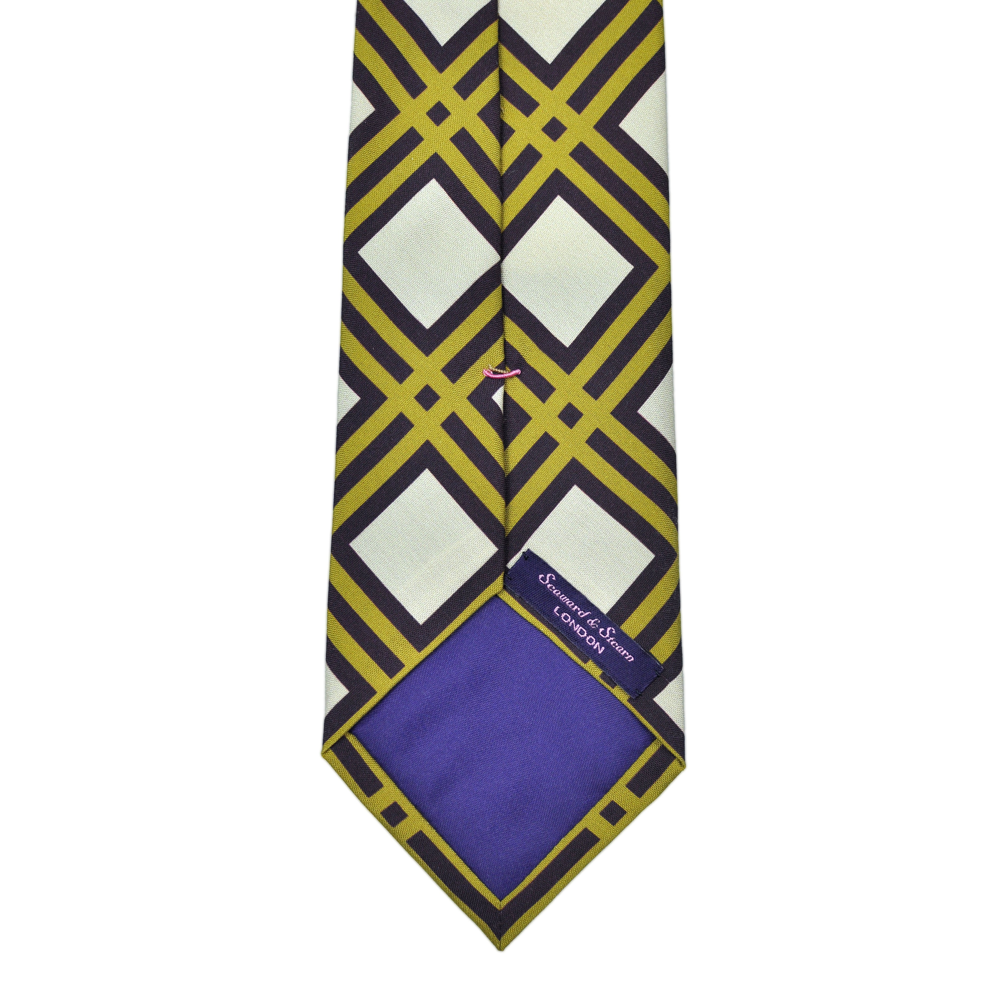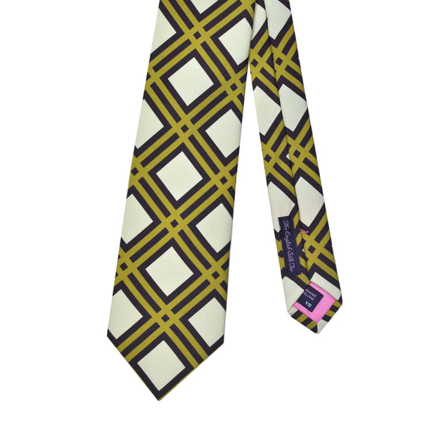 Lattice 'Dusty Silk' Print Tie in Mustard, Claret & Cream
