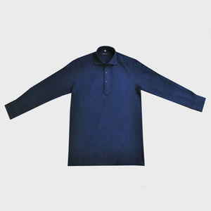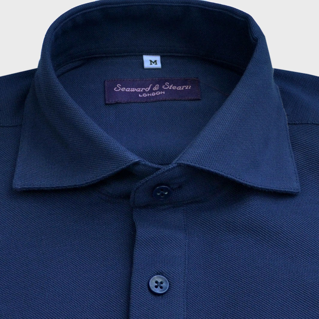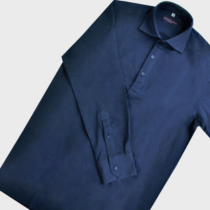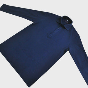 Long Sleeve Pique Cotton Polo Shirt Navy Blue