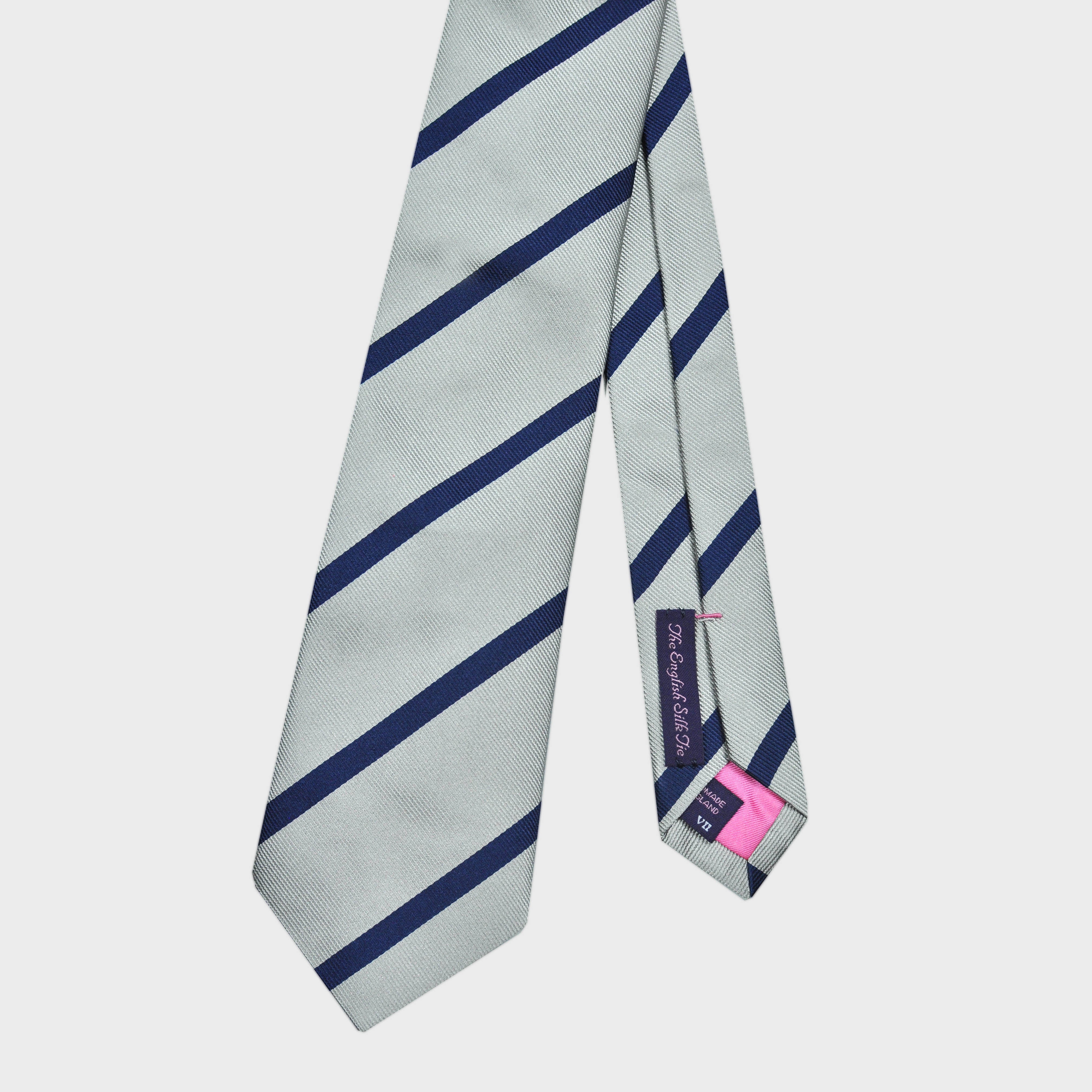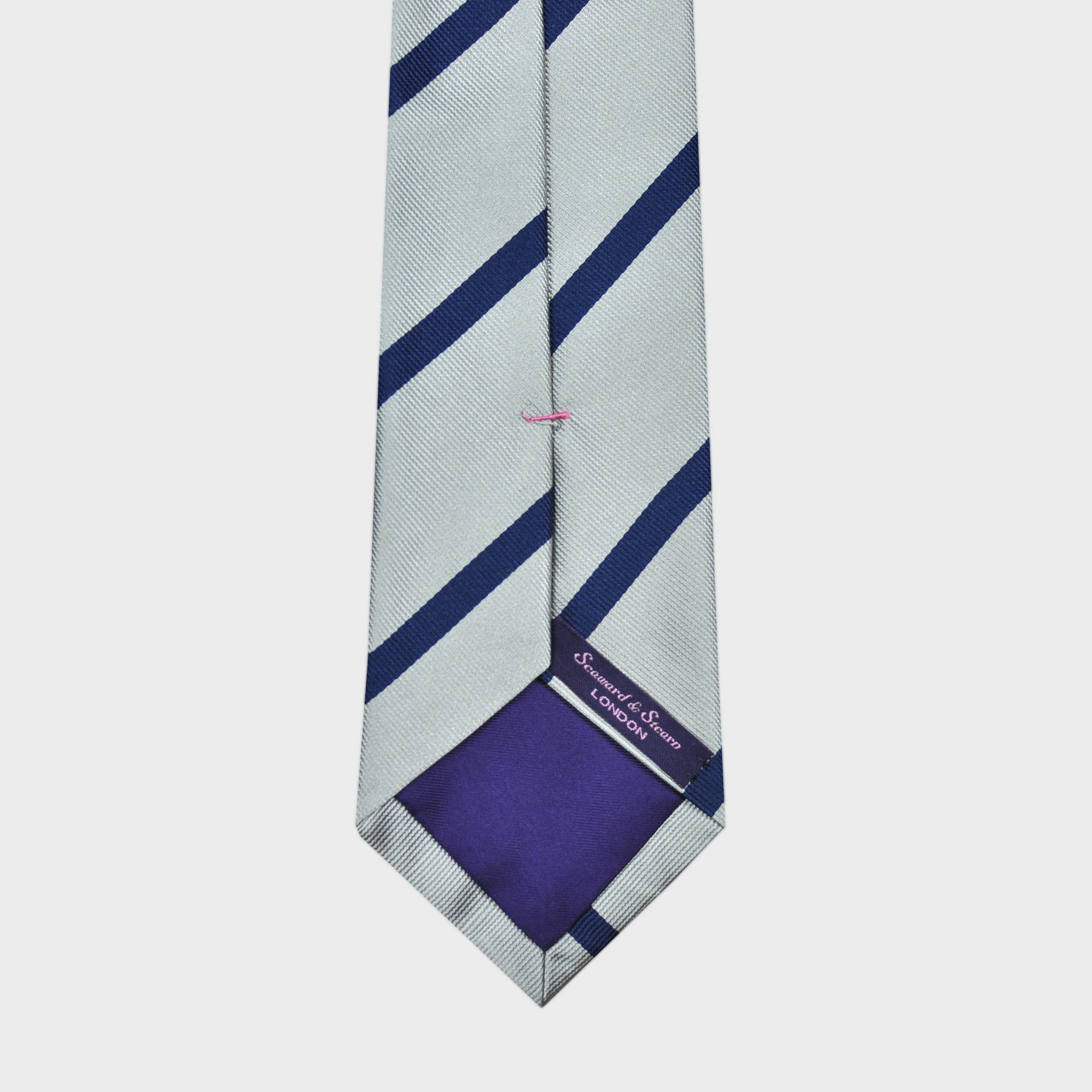 Narrow Stripes Reppe Silk Tie in White & Navy