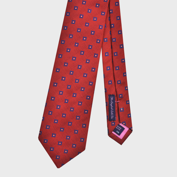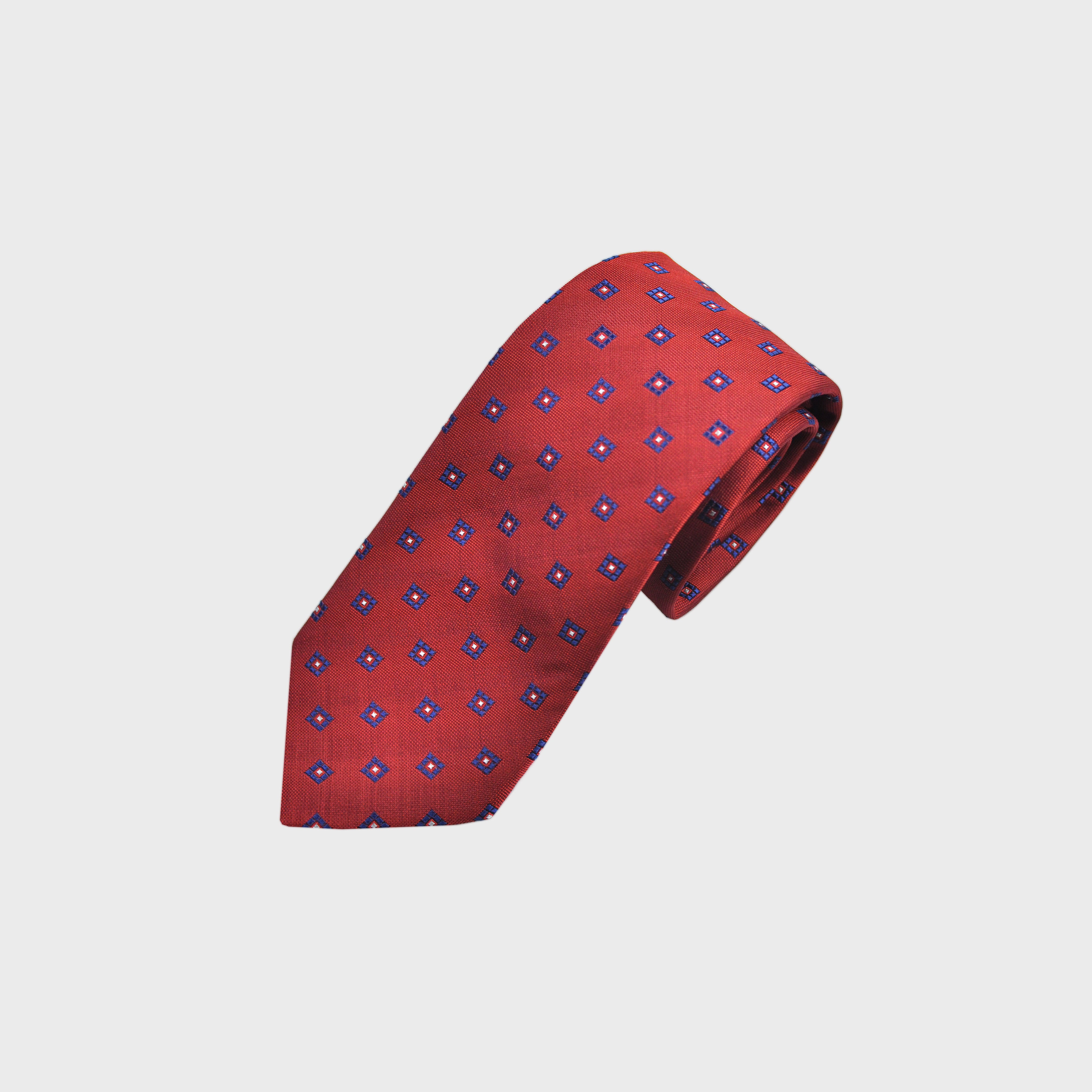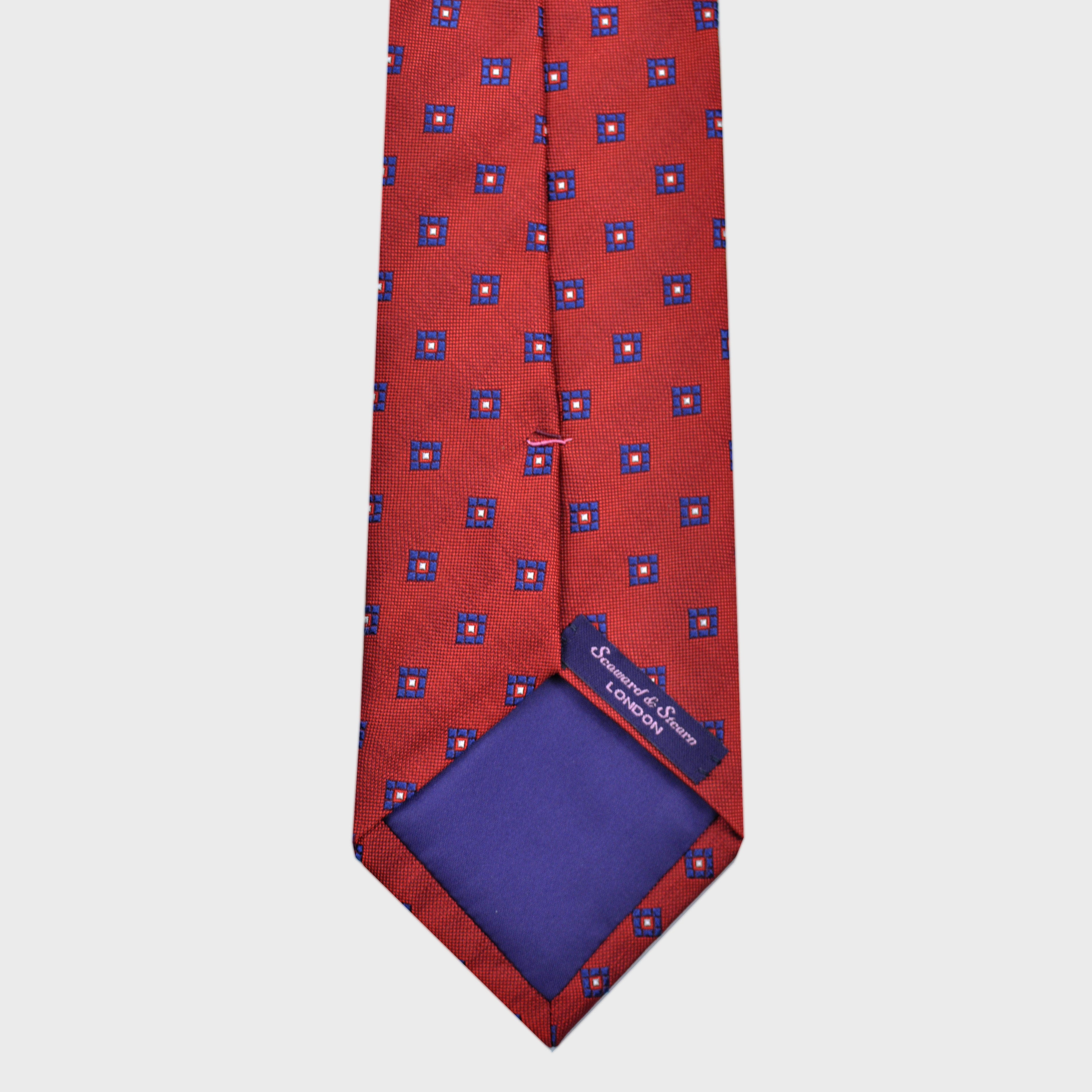Neat Repeat Squares Woven Silk Tie in Red & Blue