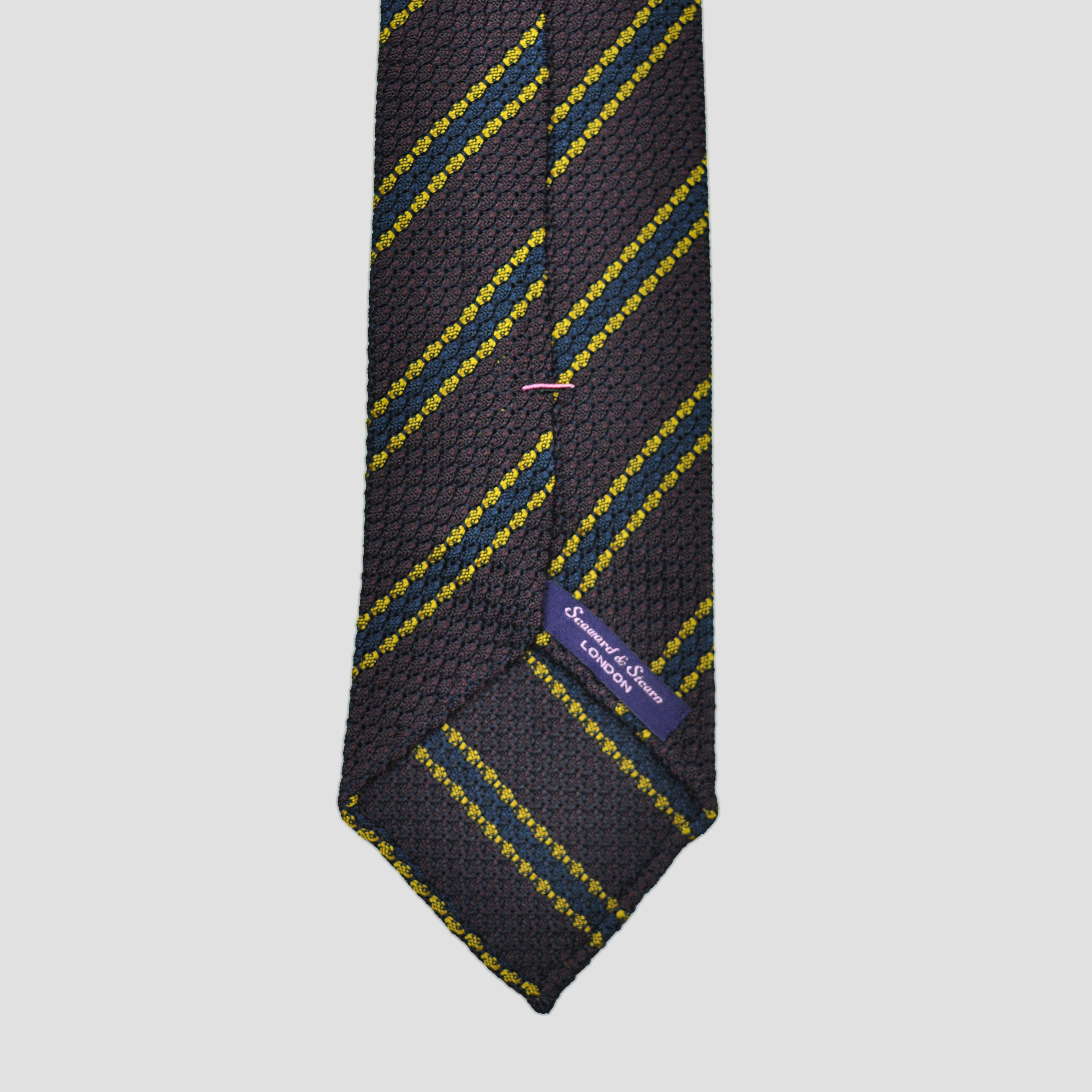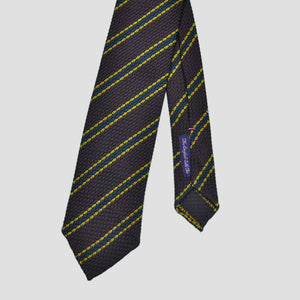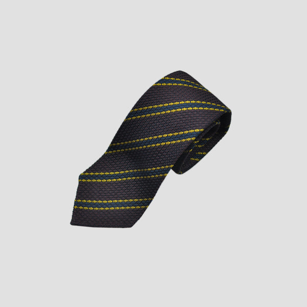 Neat Stripes Handrolled Grenadine Silk Tie in Brown, Blue & Yellow
