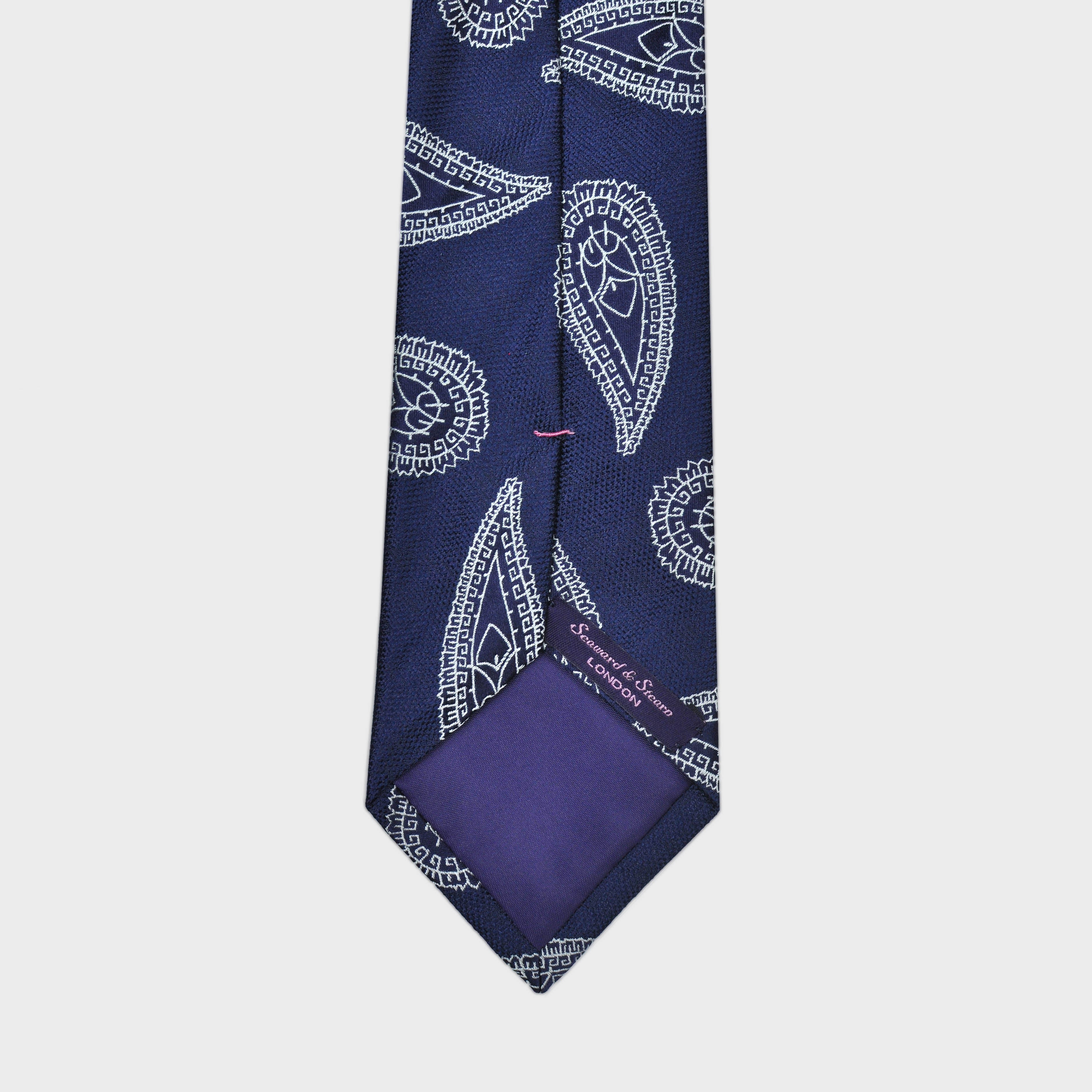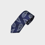 Paisley Leaf on Tussah Silk Tie in Navy Blue