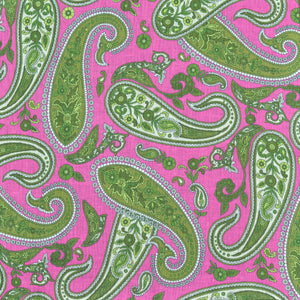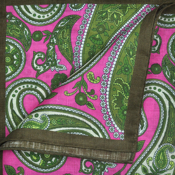 Paisley Linen Pocket Square in Pink, Lime & Brown