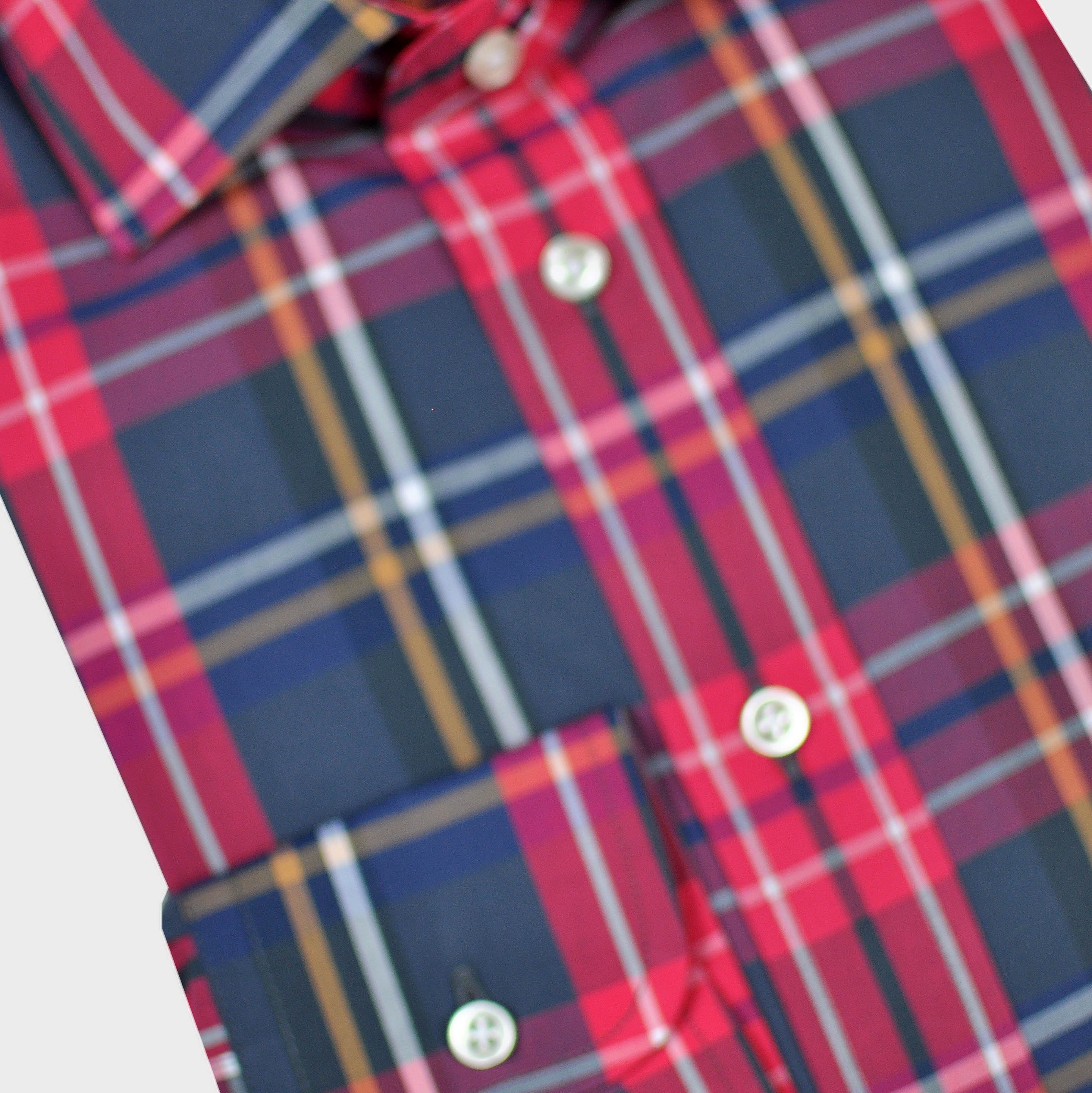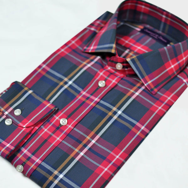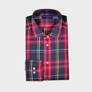 Plaid Spread Collar Sports Shirt in Red & Blue