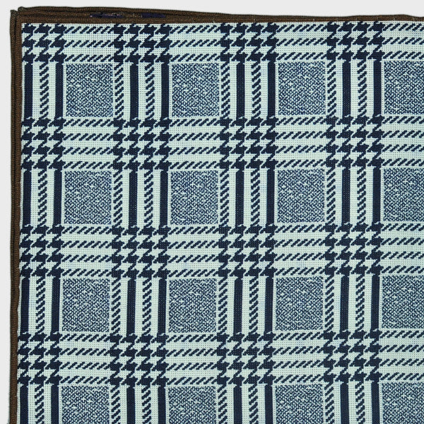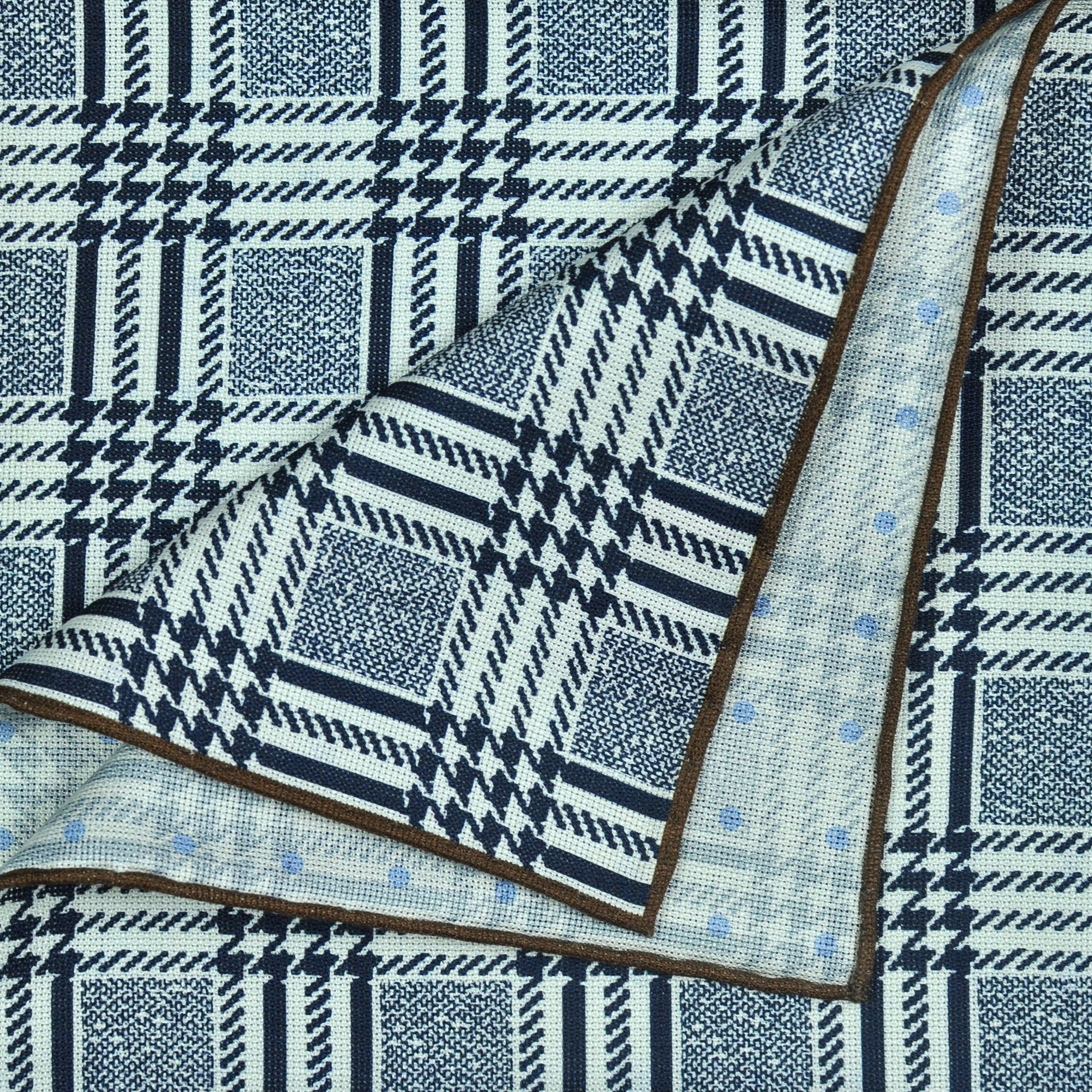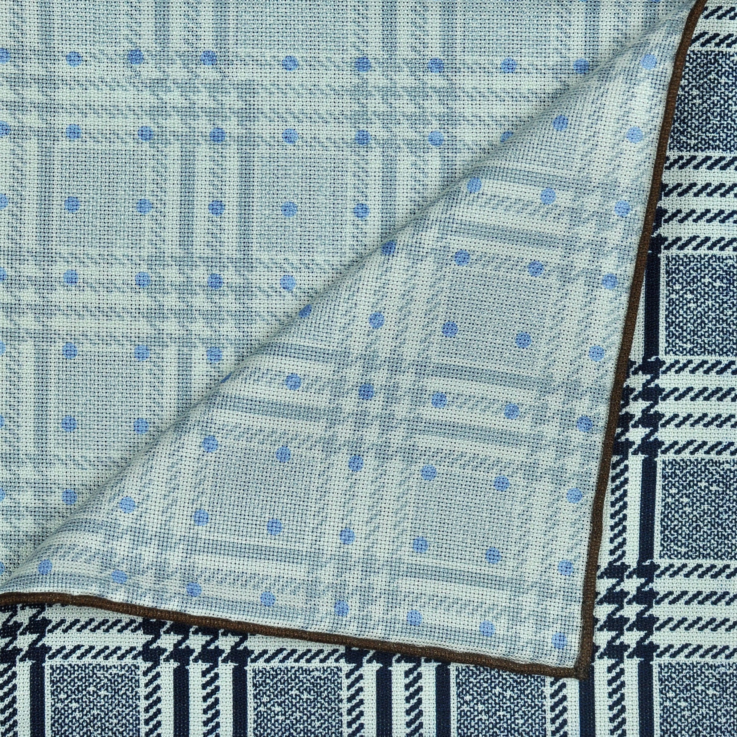 Puppy Tooth Check & Dots Reversible Panama Silk Pocket Square in Blue, Grey & Brown