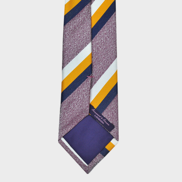 Blue, Yellow & White Reppe Stripes on Mottled Claret Tussah Silk Tie