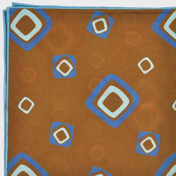 Retro Geometric Reversible Panama Silk Pocket Square in Brown, Teal & Blue