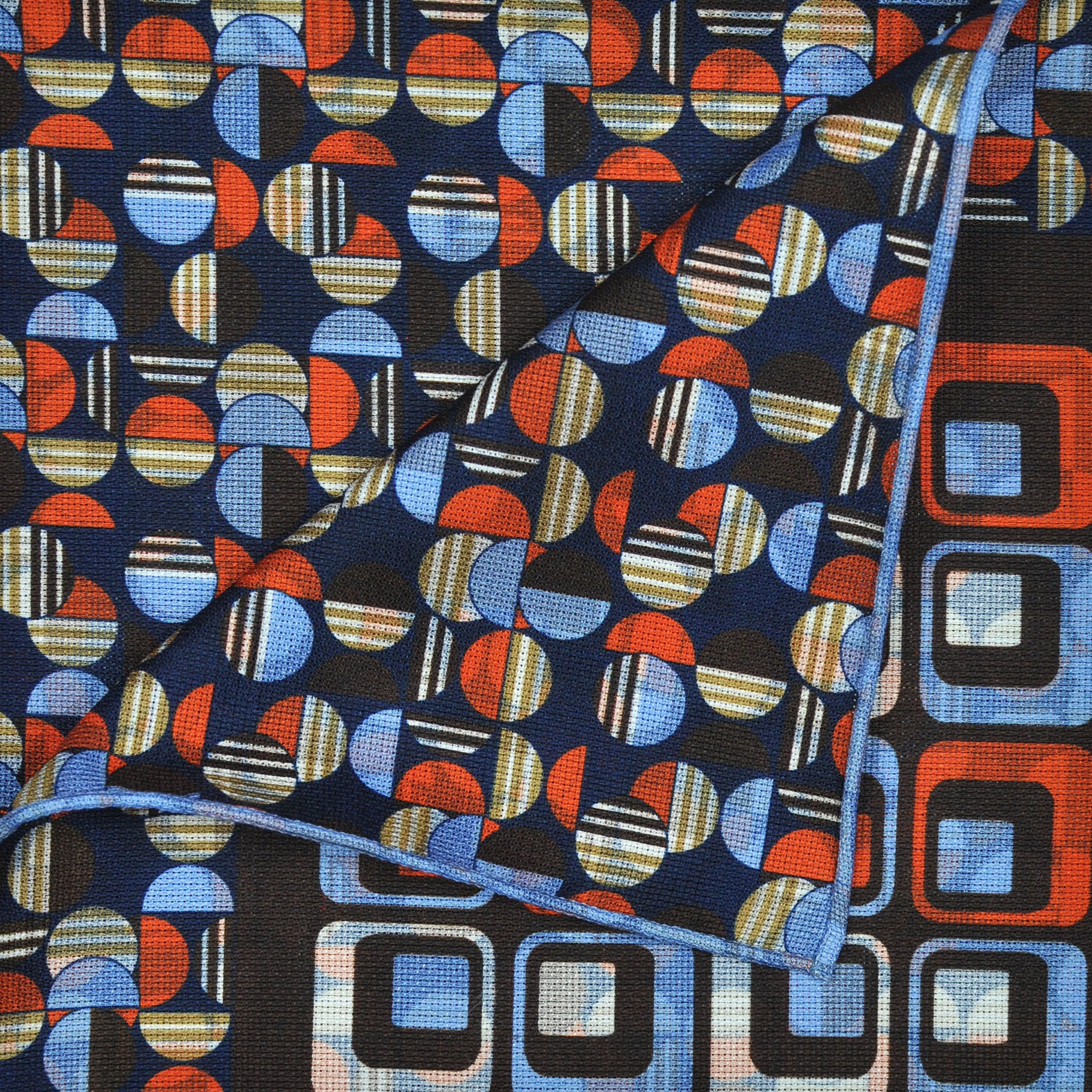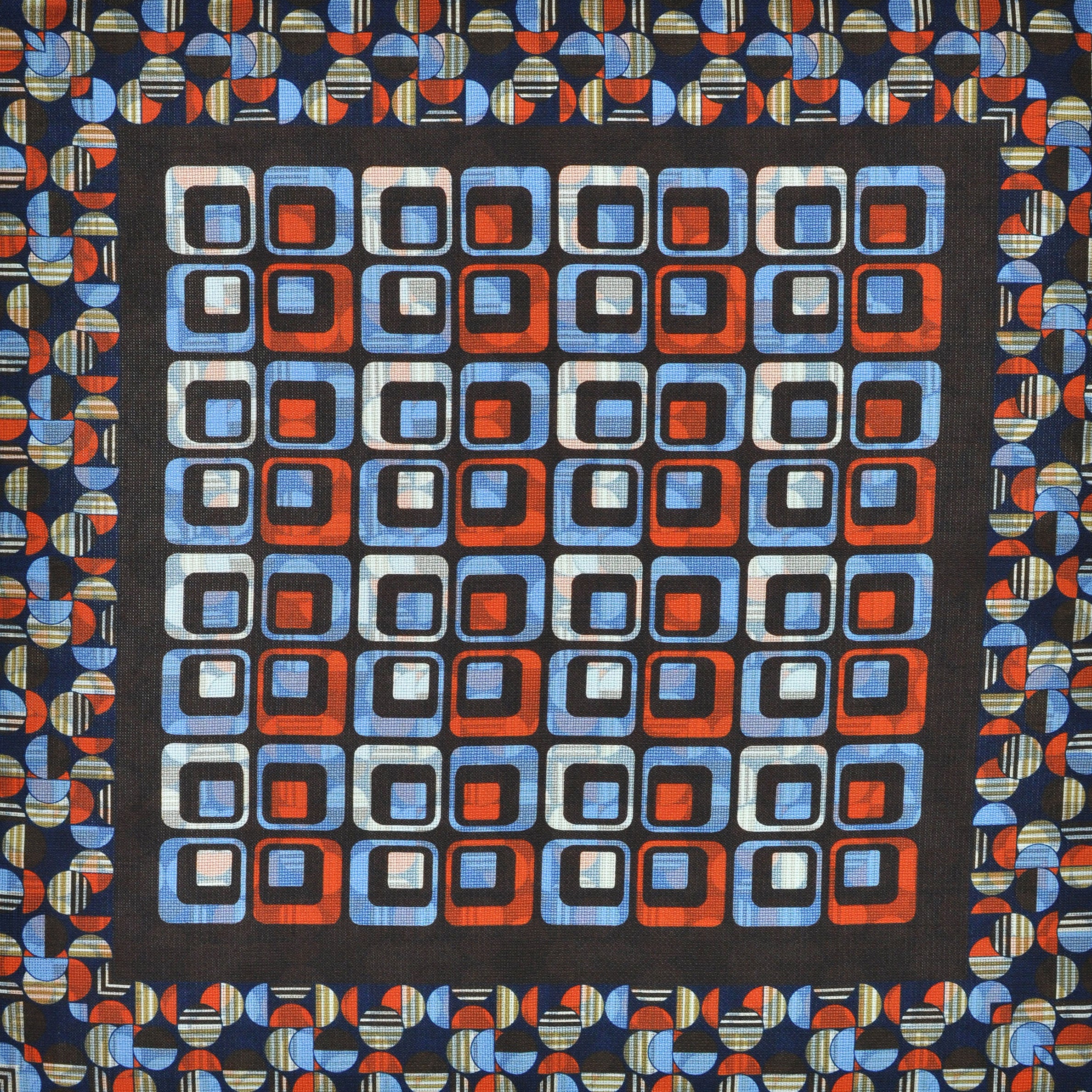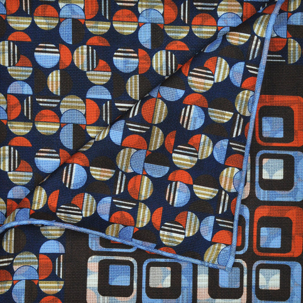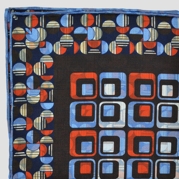 Retro Geo's Reversible Panama Silk Pocket Square in Navy, Blue, Red & Brown