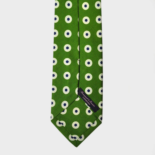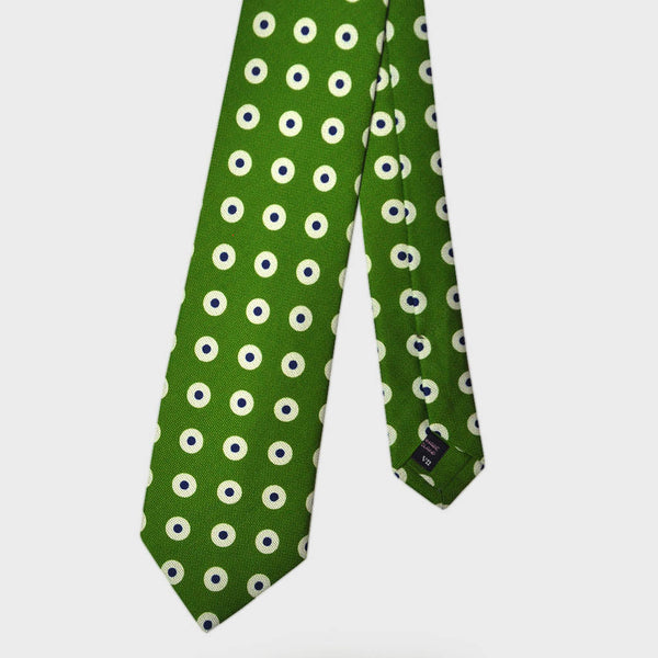 Hoops & Dots Silk & Linen Tie in Lawn Green & Navy