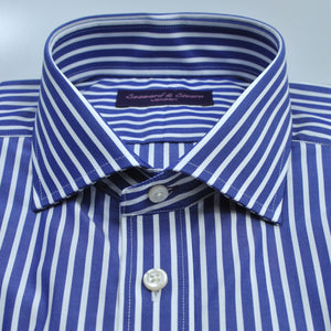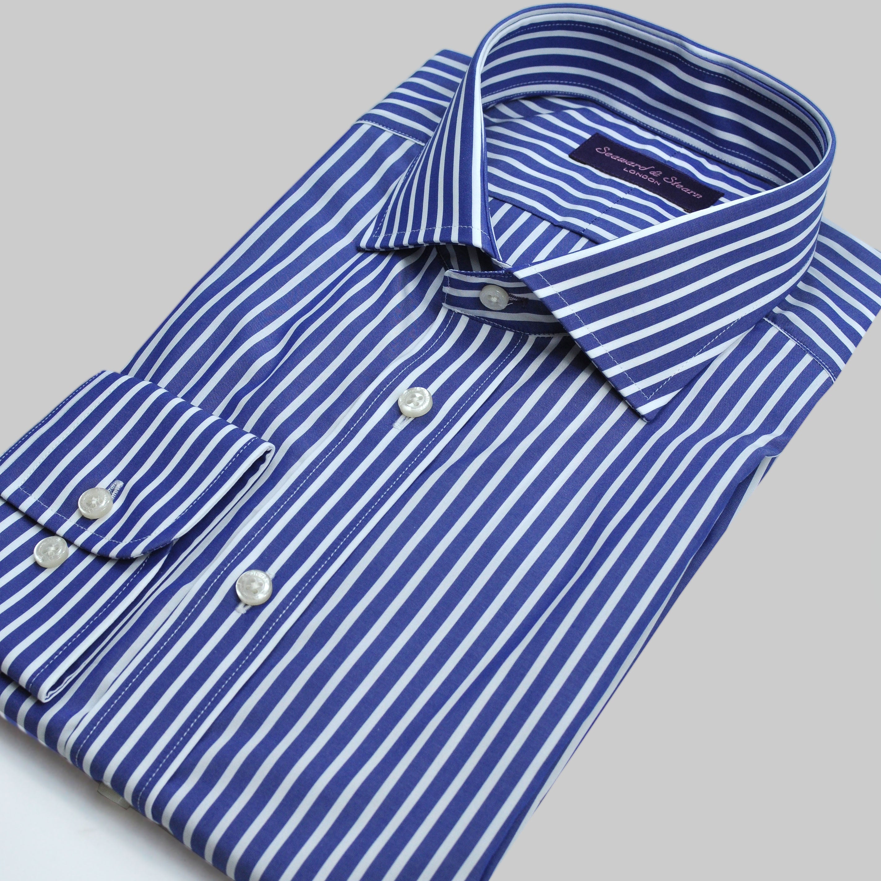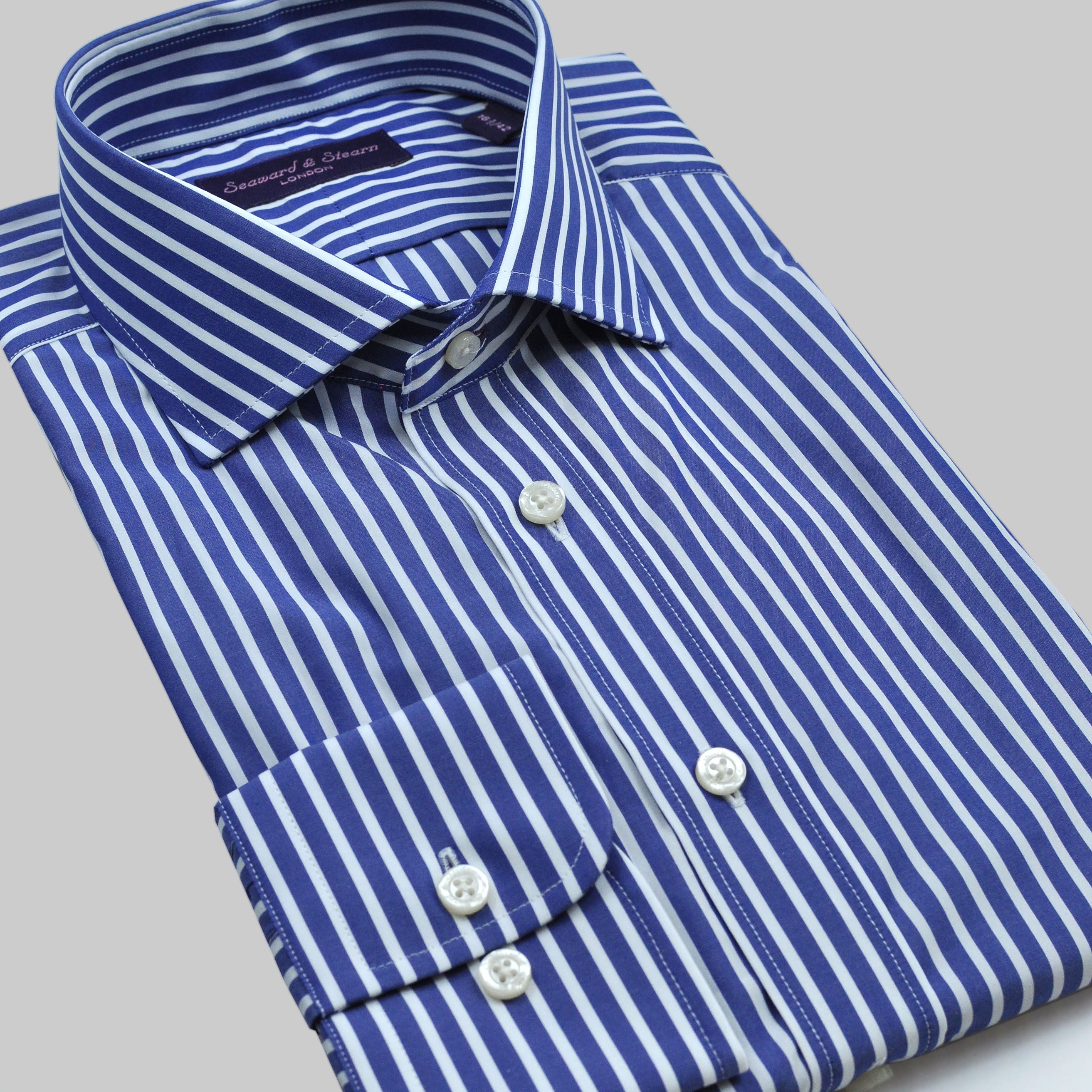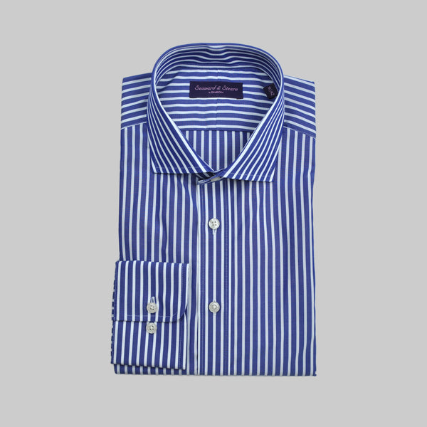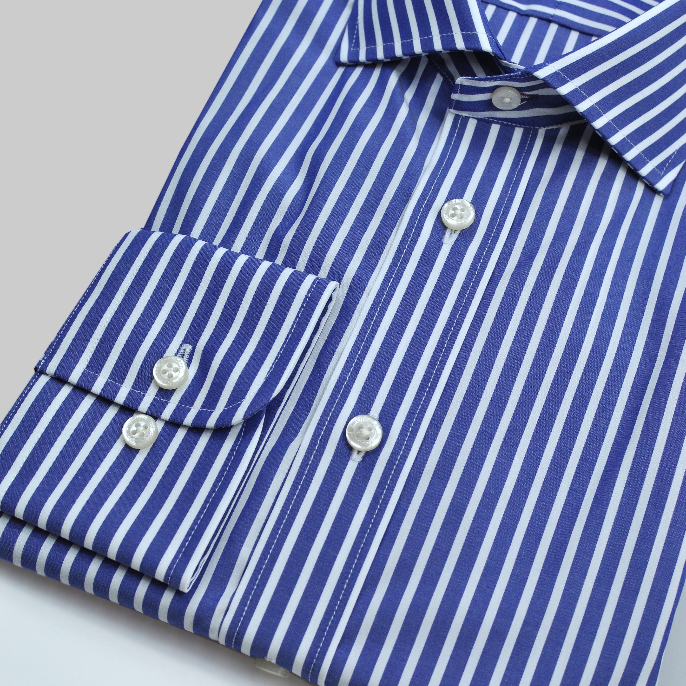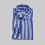 Spread Collar Block Stripe Cotton Shirt in Blue