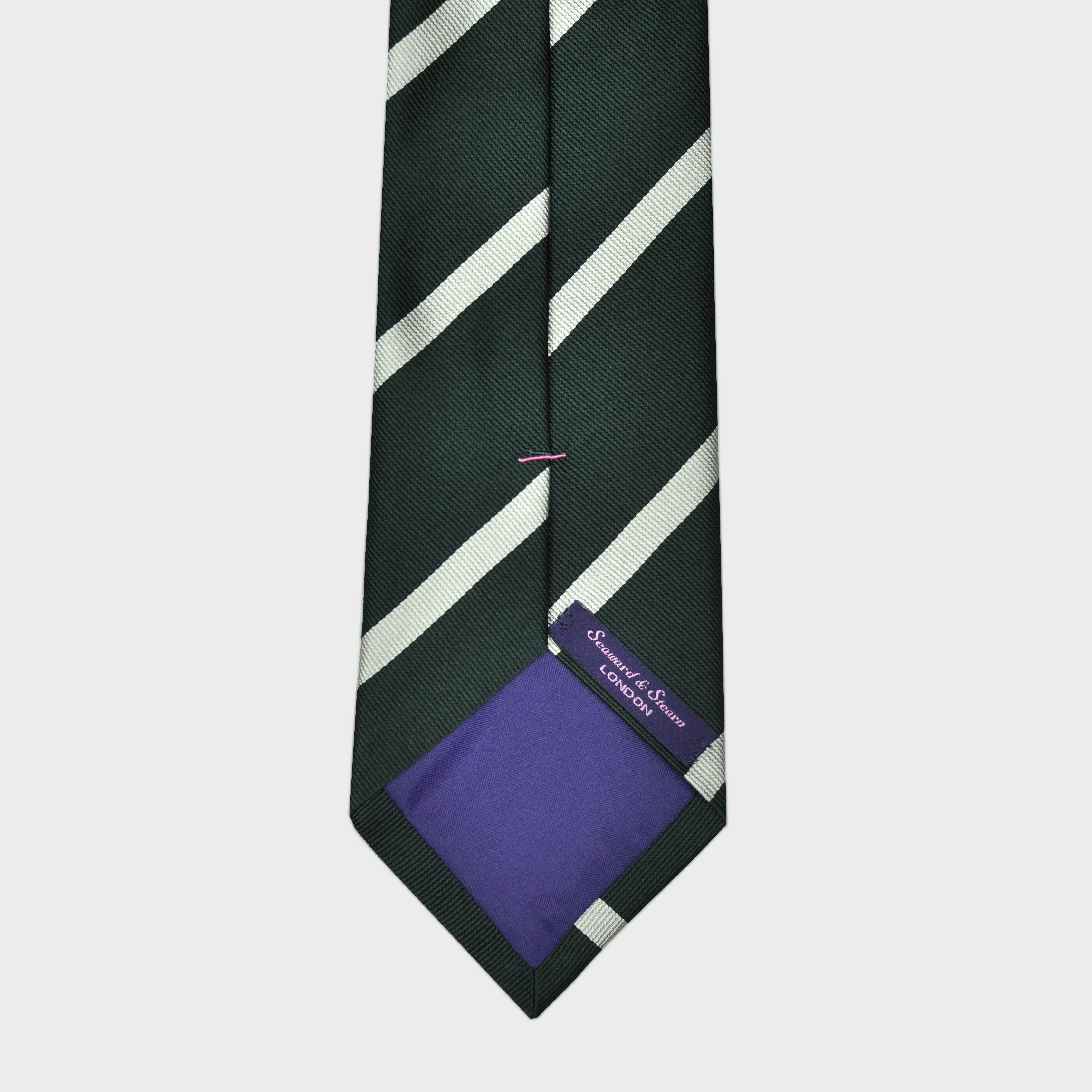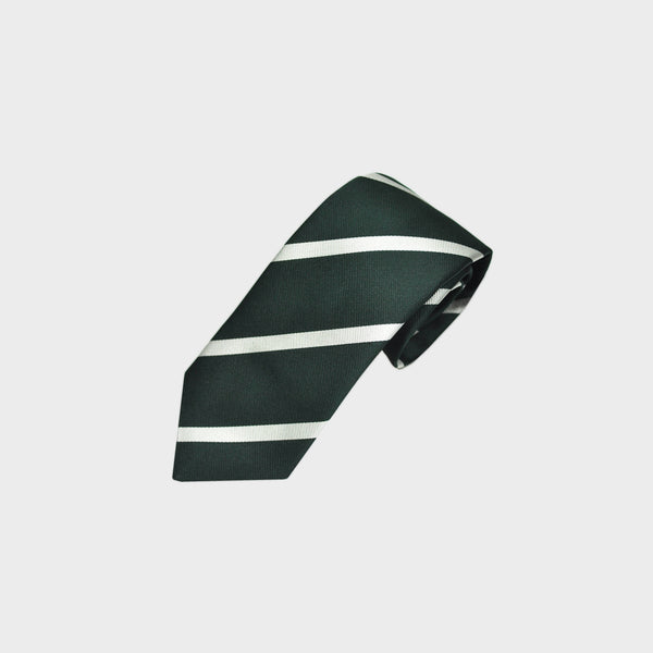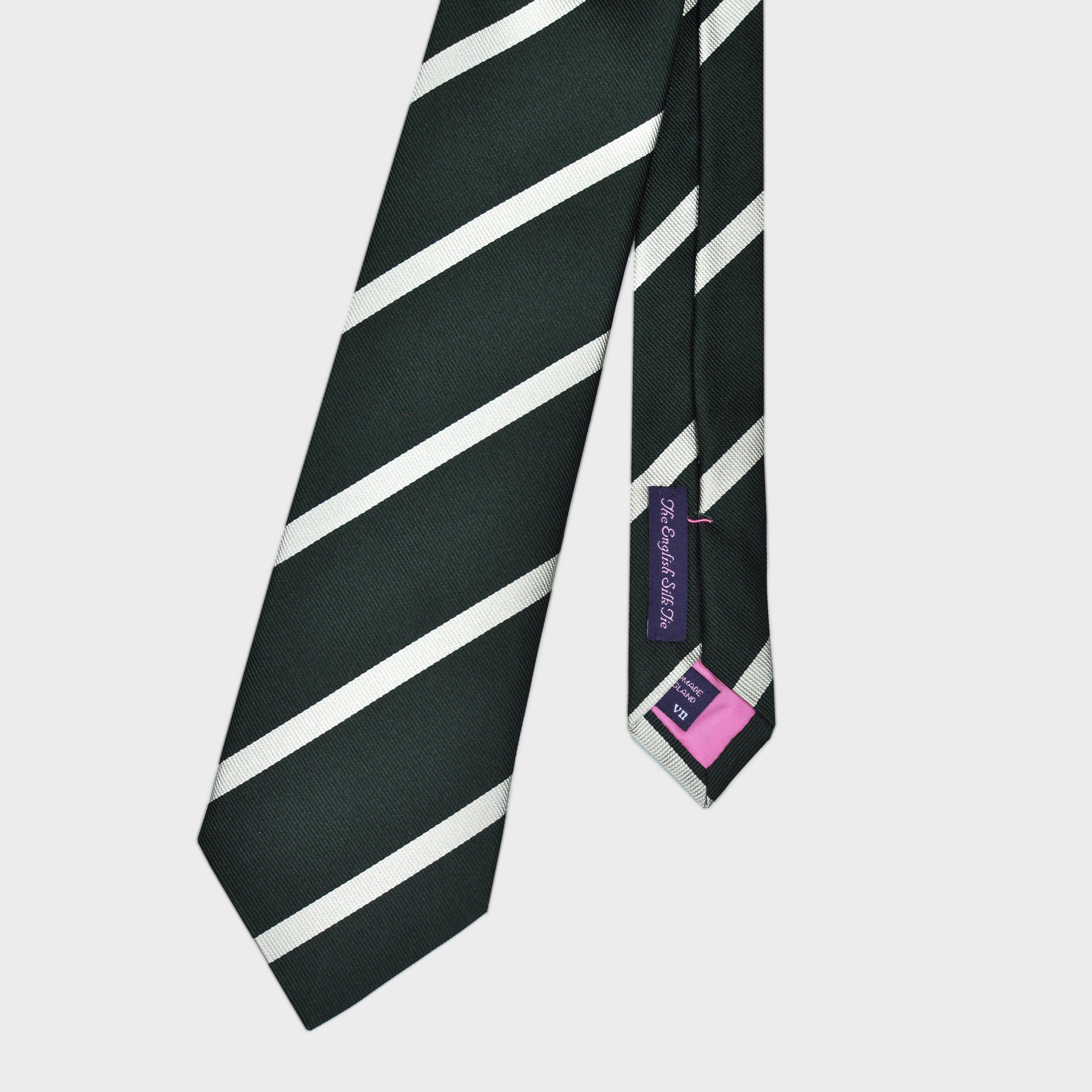 Stripes Reppe Silk Tie in Bottle Green & White