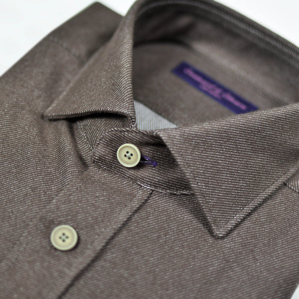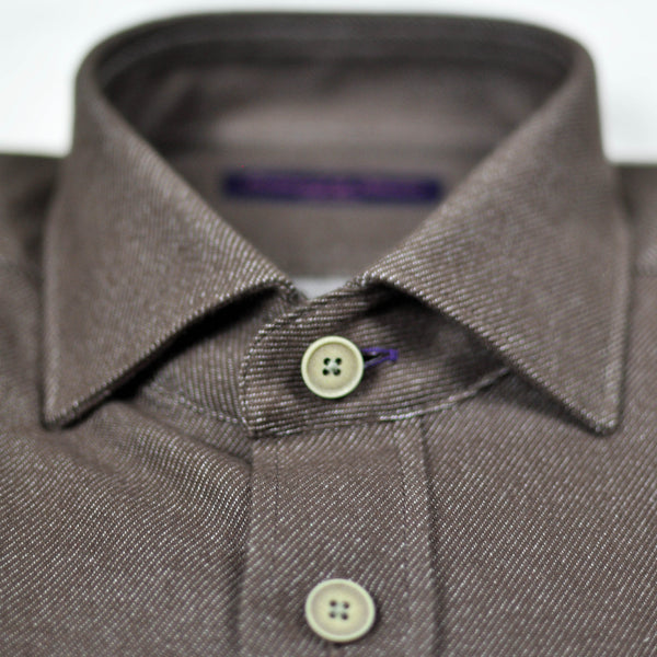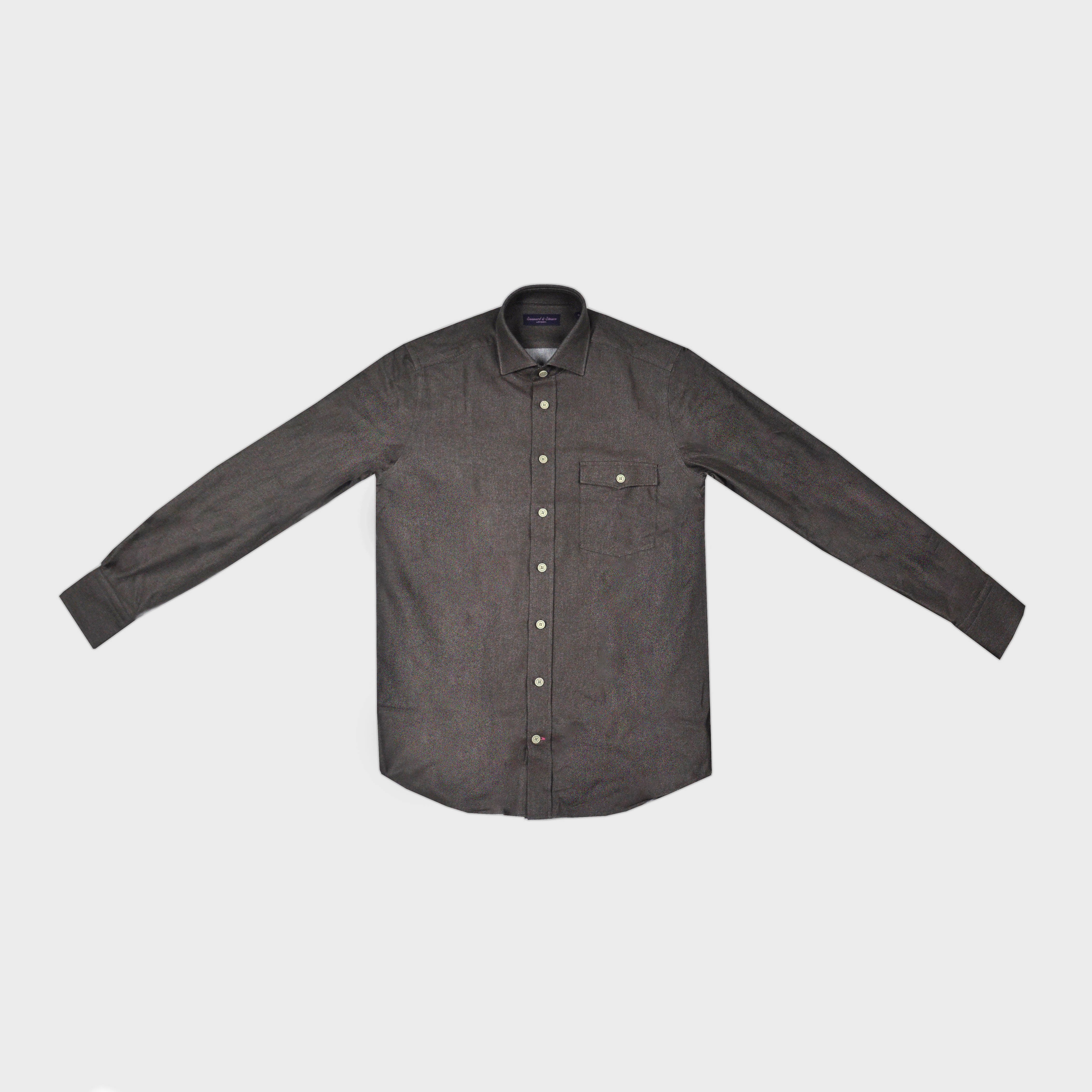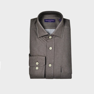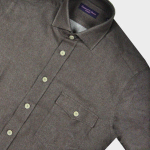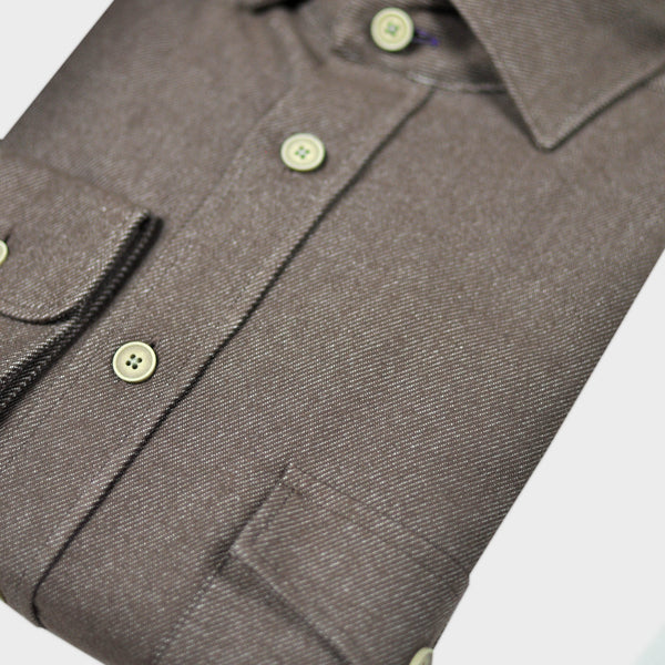 Thick Cotton Spread Collar Over-Shirt with Single Breast Pocket in Walnut Brown