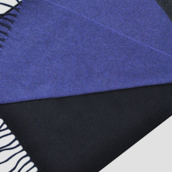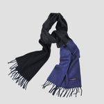 Three Panels of Colour Cashmere Scarf in Blue, Grey & Charcoal