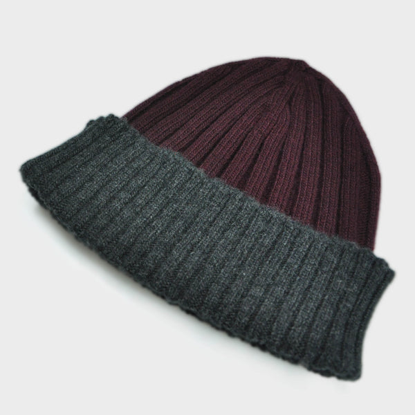 Wool Beanie in Claret & Charcoal