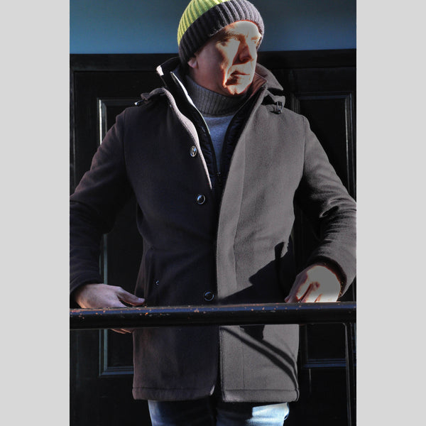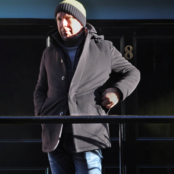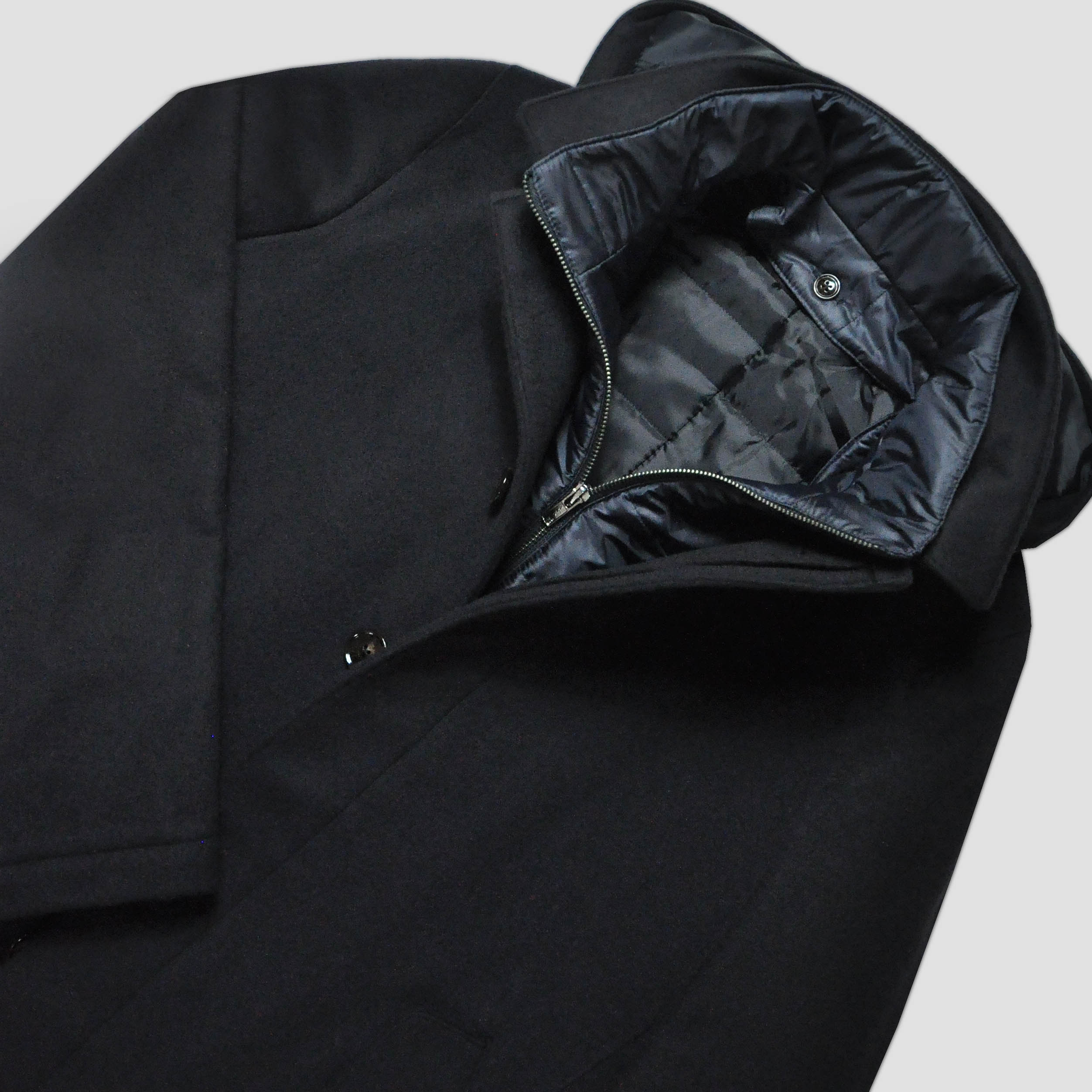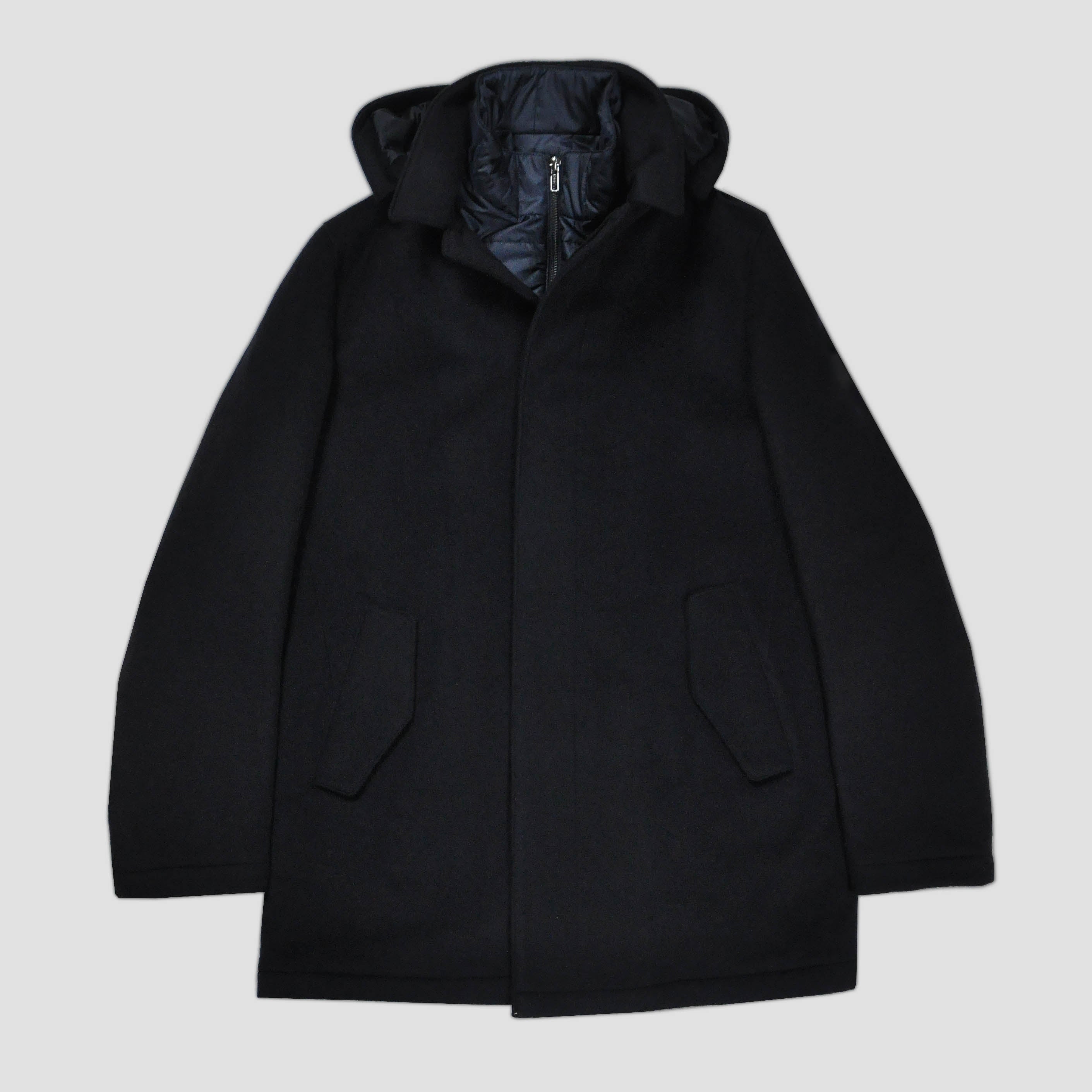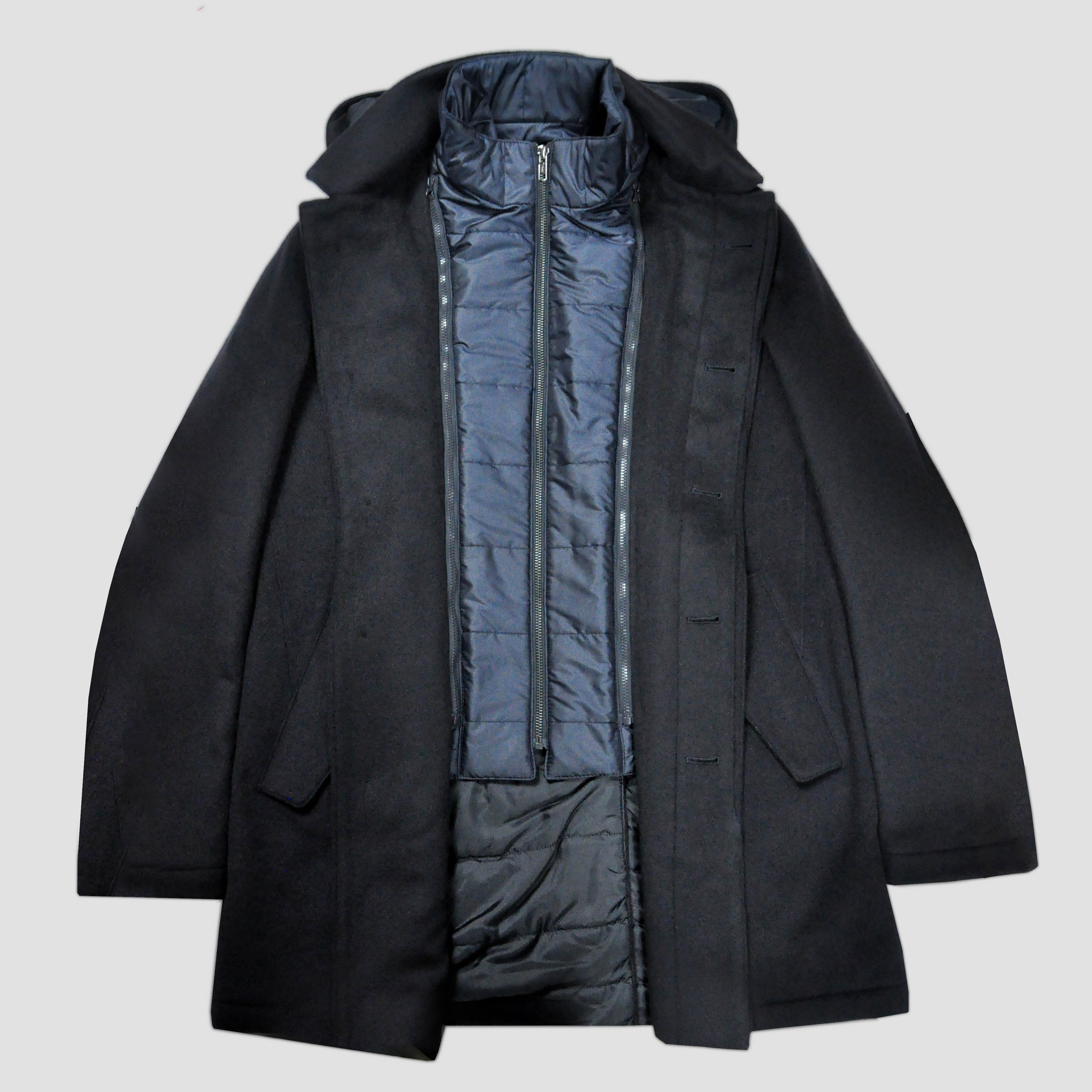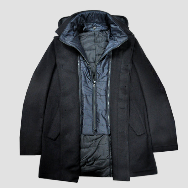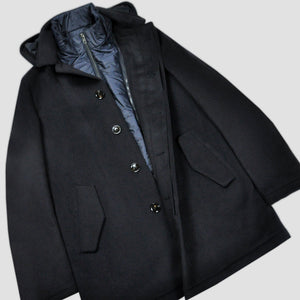 Wool Over-Coat with Detachable Puffa in Navy Blue