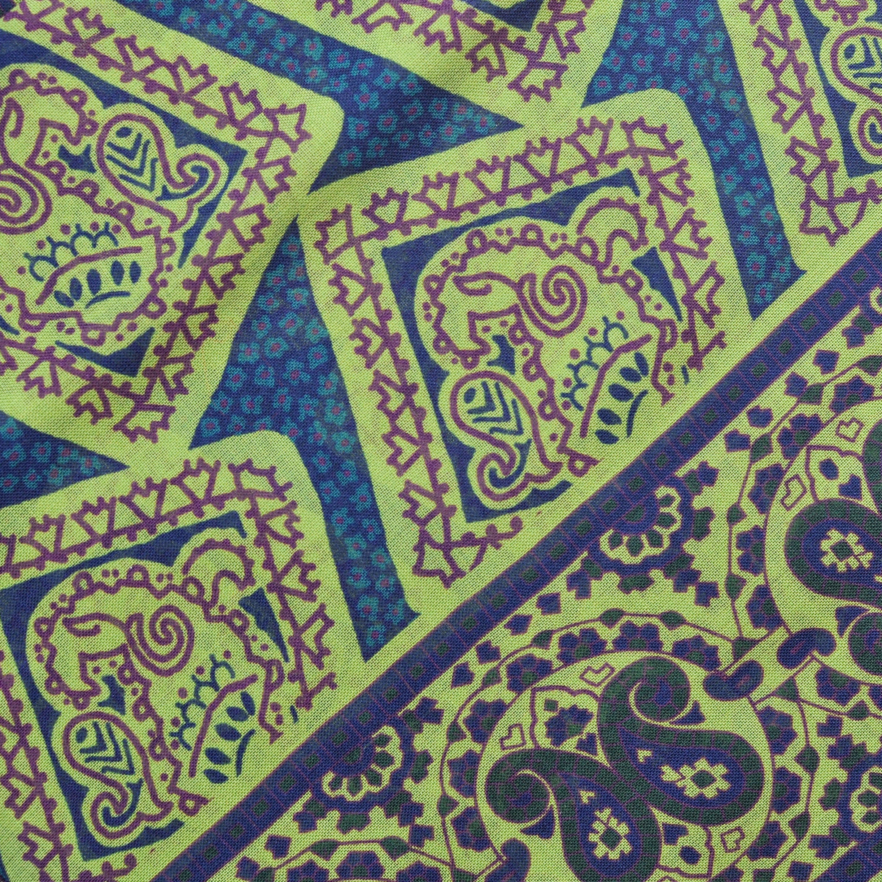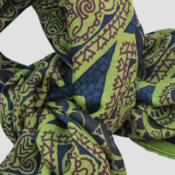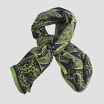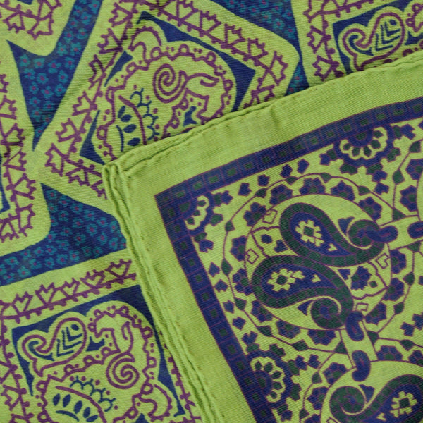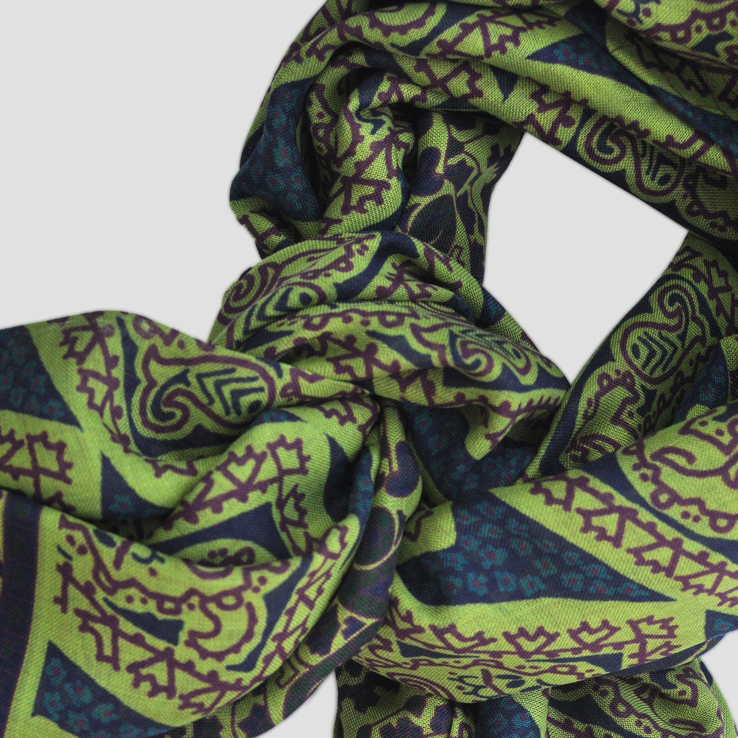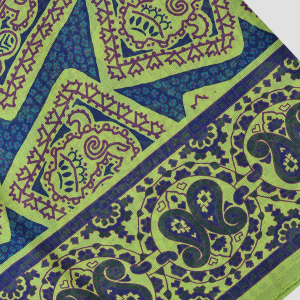 Wool Silk Large Square of Aztec Shapes & Pasiley Border in Greens & Blue