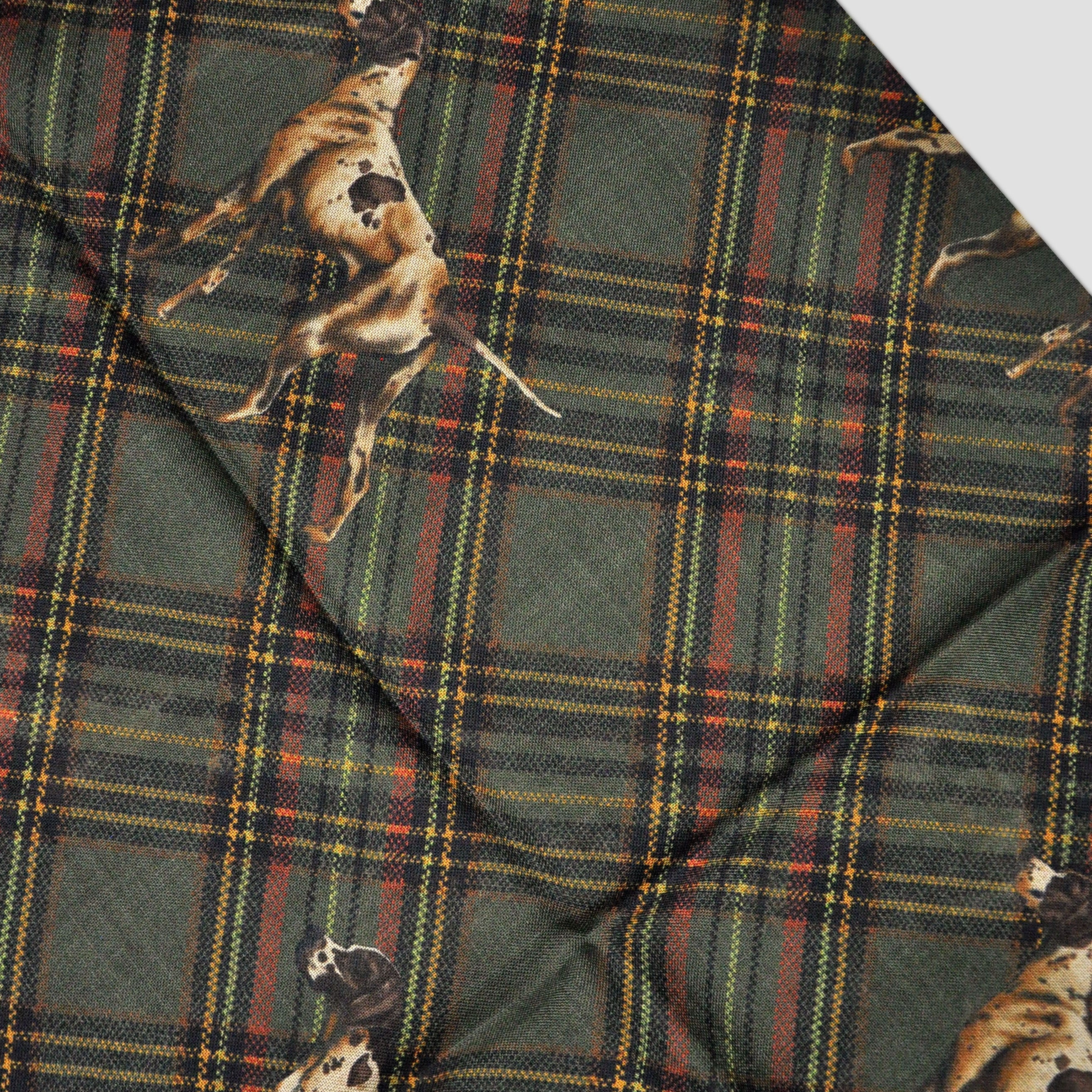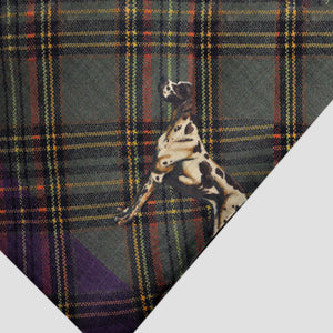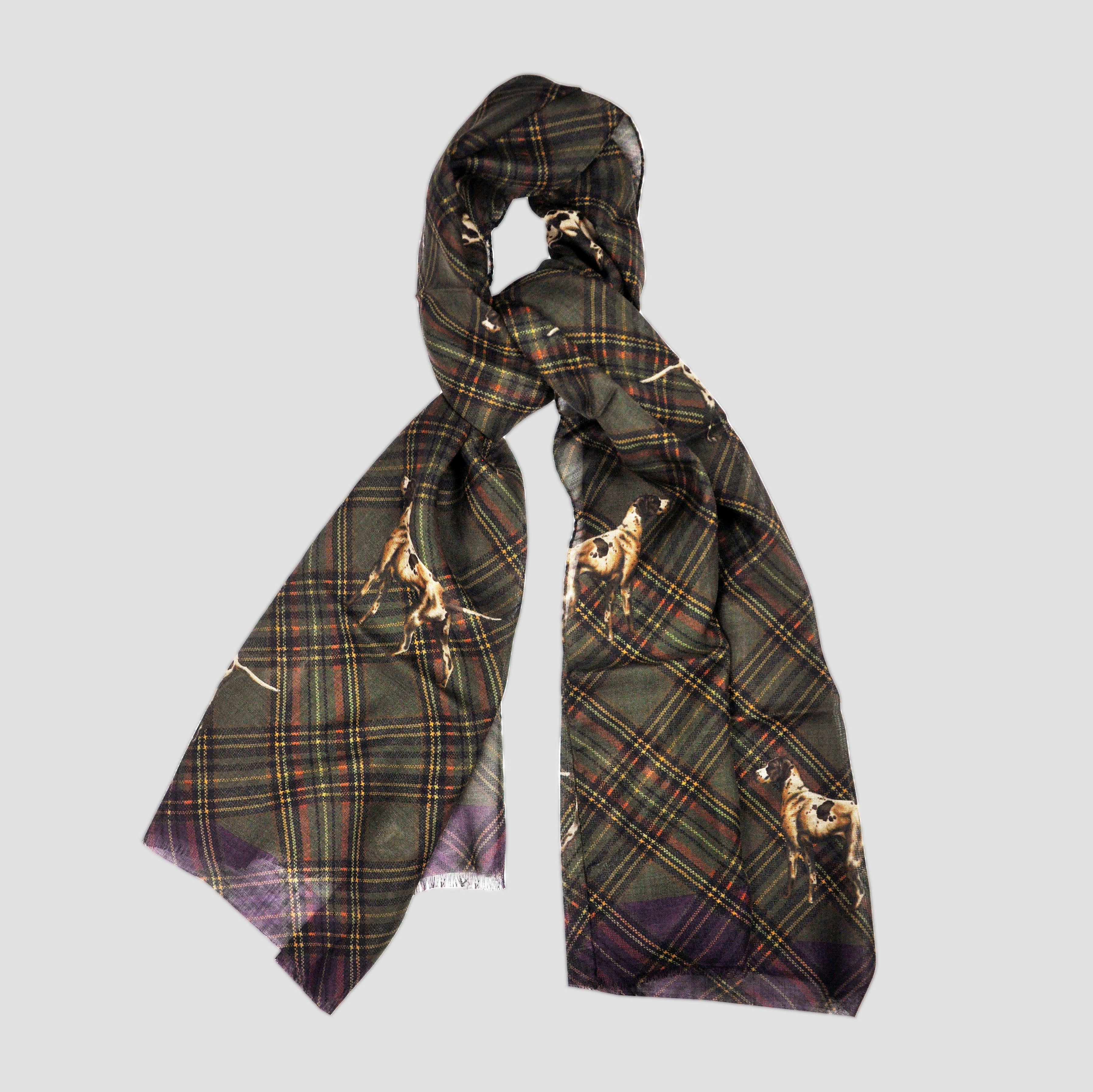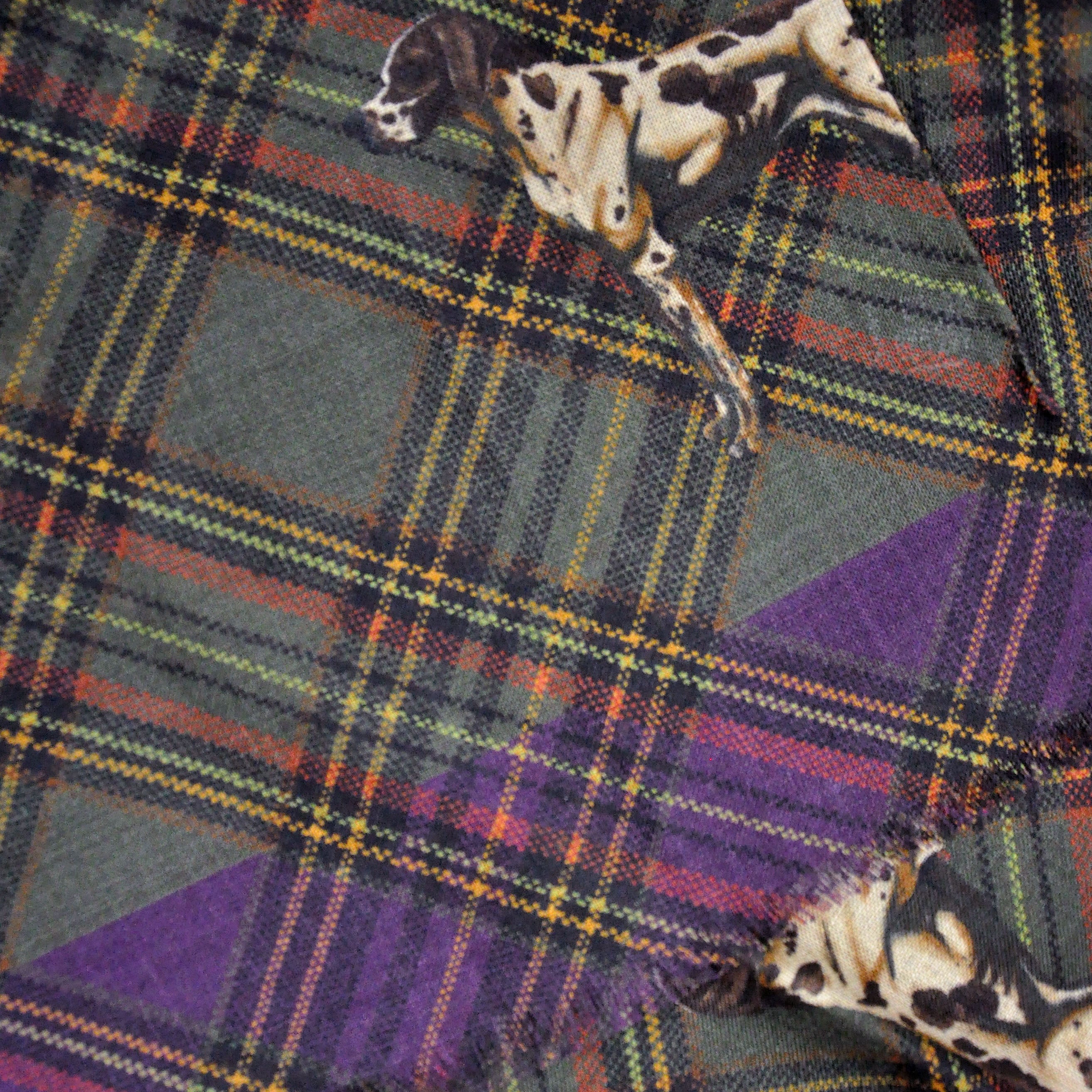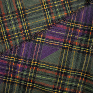 Wool Silk Plaid & Pointer Scarf in Green, Ochre & Purple