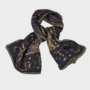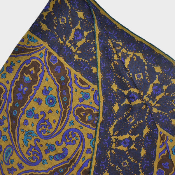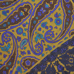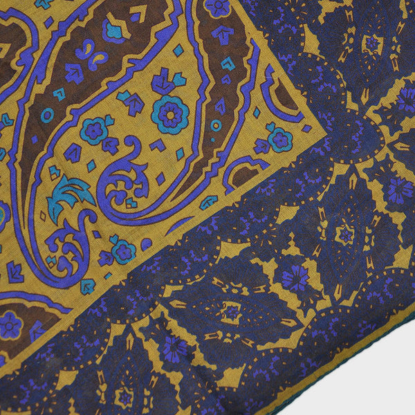 Wool Silk Paisley Leaf with Floret Border Large Square in Mustard & Blue